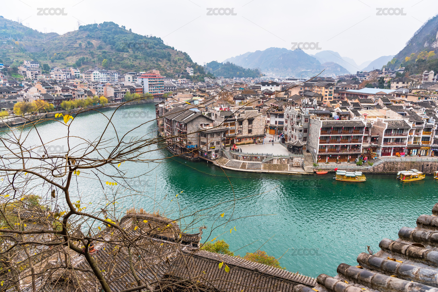 全景,湖南省,凤凰古城,湘西土家族苗族自治州,凤凰县,无人,地形,自然,户外,天空