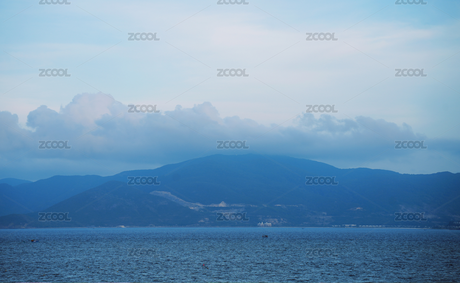 有白云的中国广东省深圳市大鹏西冲海面风光