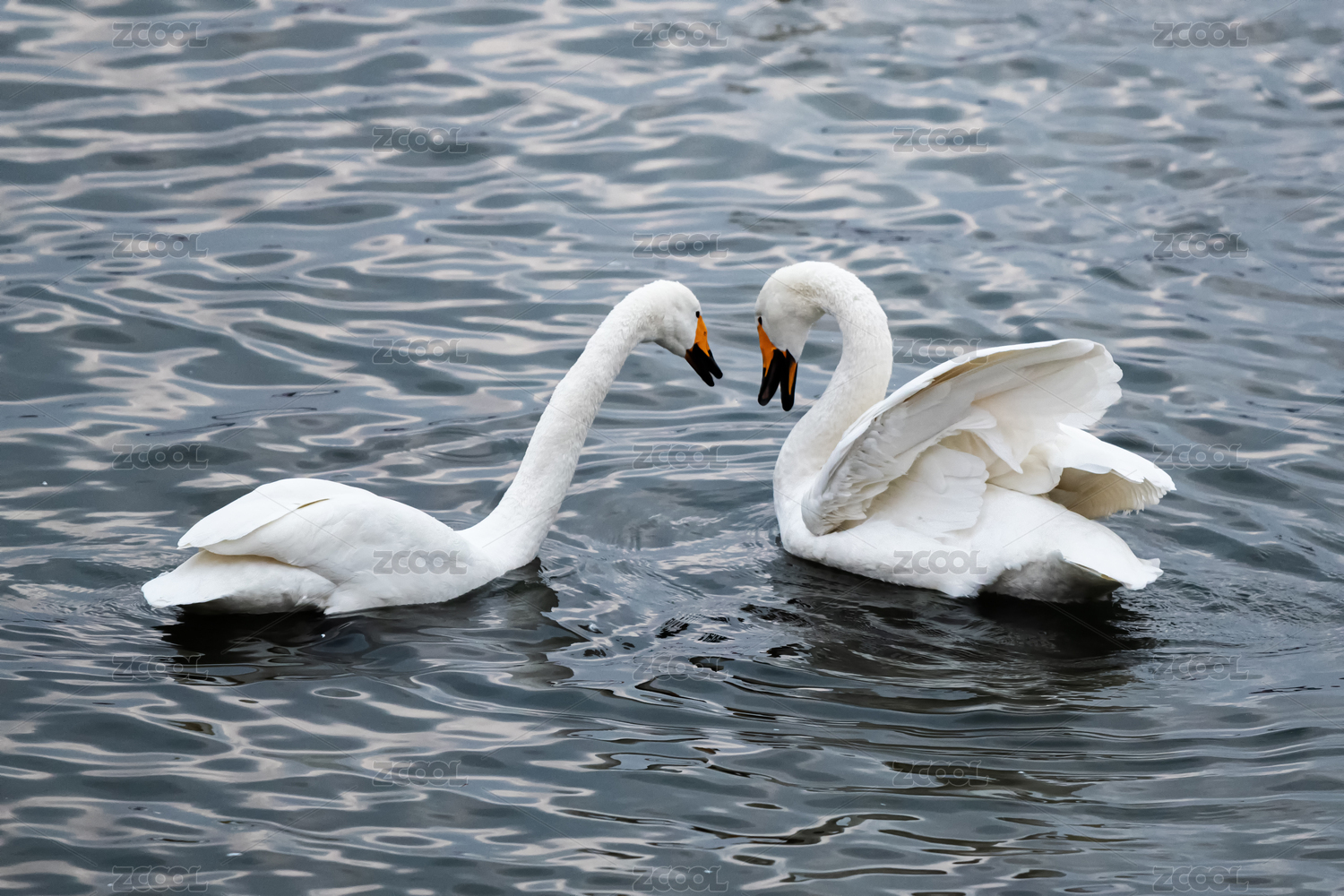 郑州北龙湖湿地公园疣鼻天鹅白天鹅水中畅游