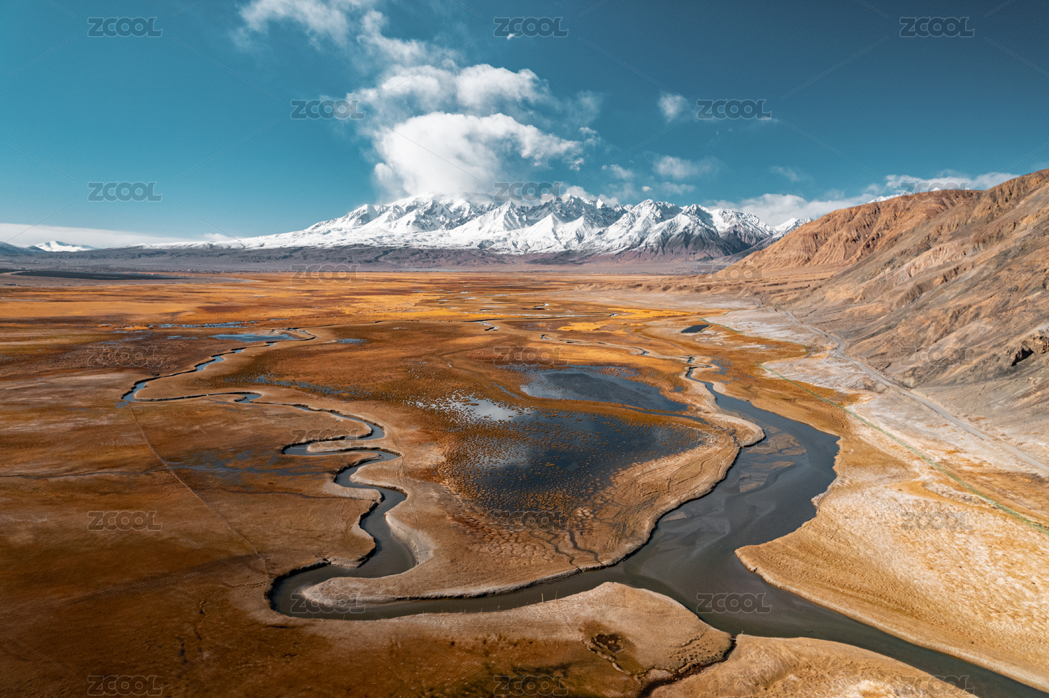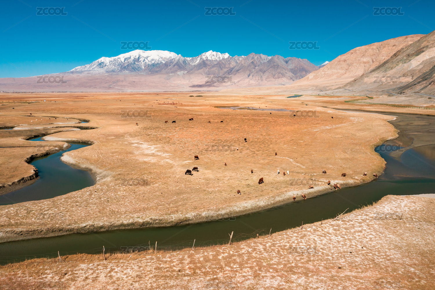 中国新疆塔什库尔干县塔合曼乡雪山下的秋天