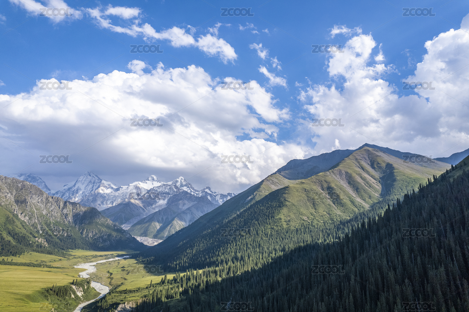 中国新疆伊犁昭苏夏塔草原雪山自然风光