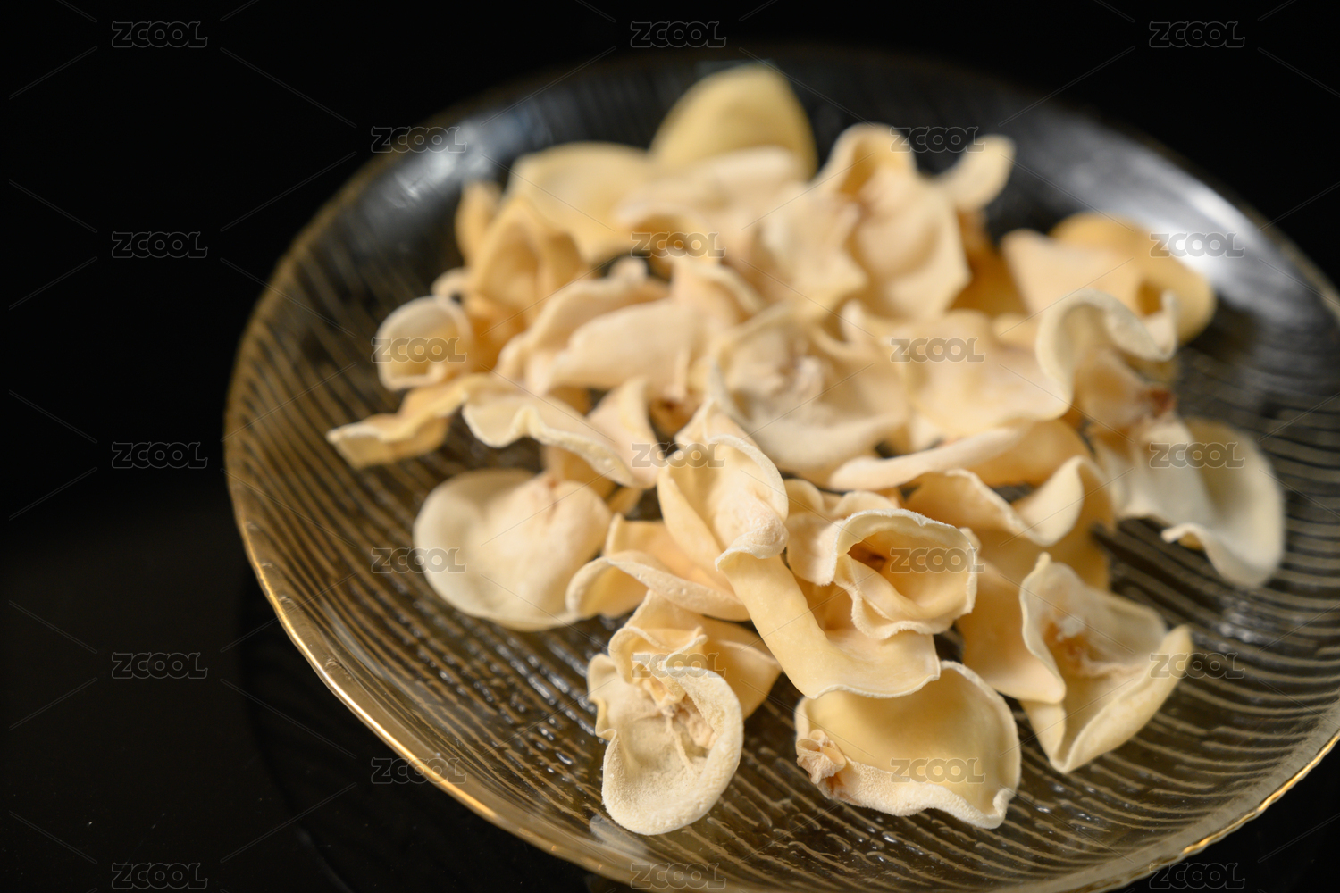 桌面上的盘子里的美味可口的干白玉木耳