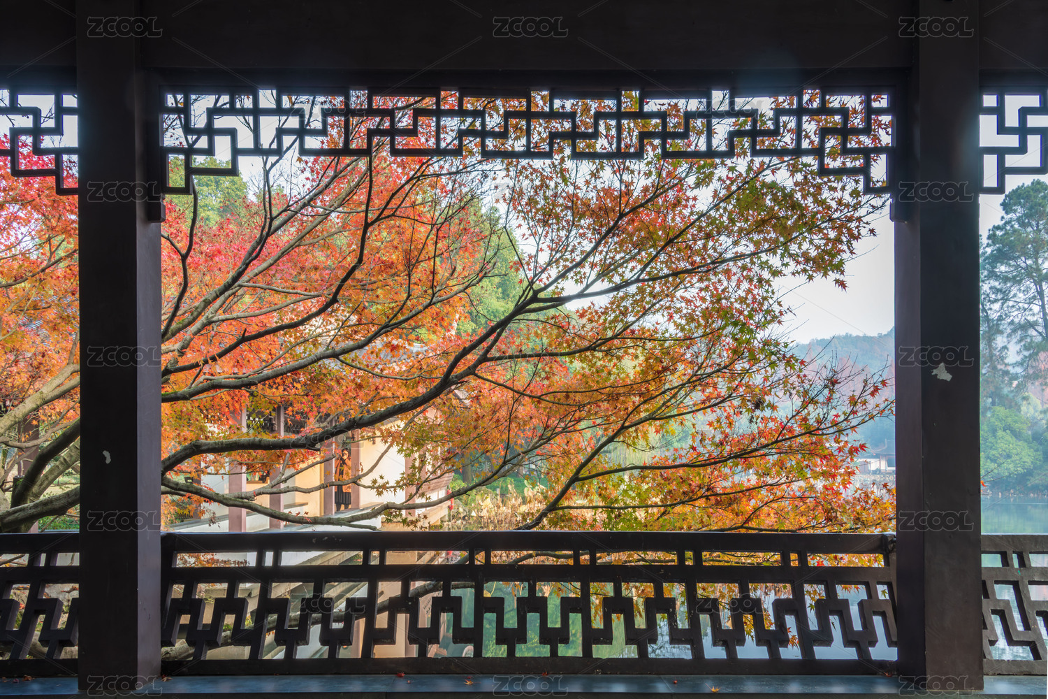 杭州曲院风荷秋天枫叶红枫
