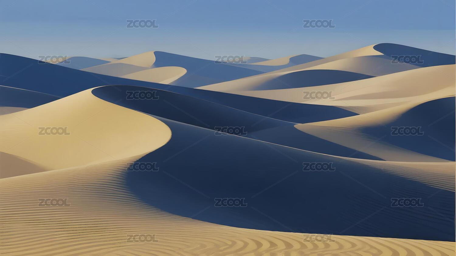 沙漠沙丘在阳光下呈现出美丽的光影效果