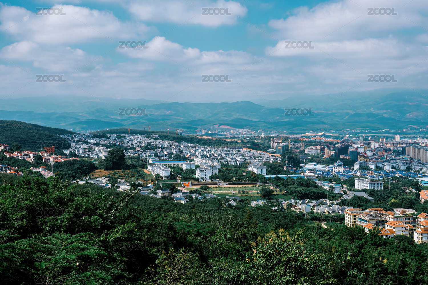 航拍昆明七彩云南古滇名城度假区住宅建筑群