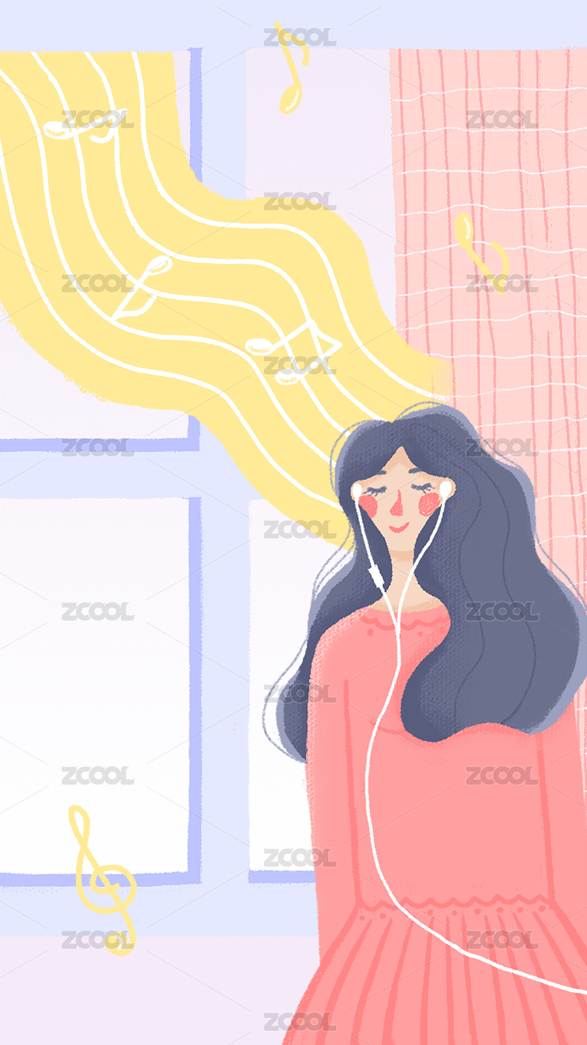 家里,柜子,听音乐,耳机,戴耳机,长发,女孩,聆听