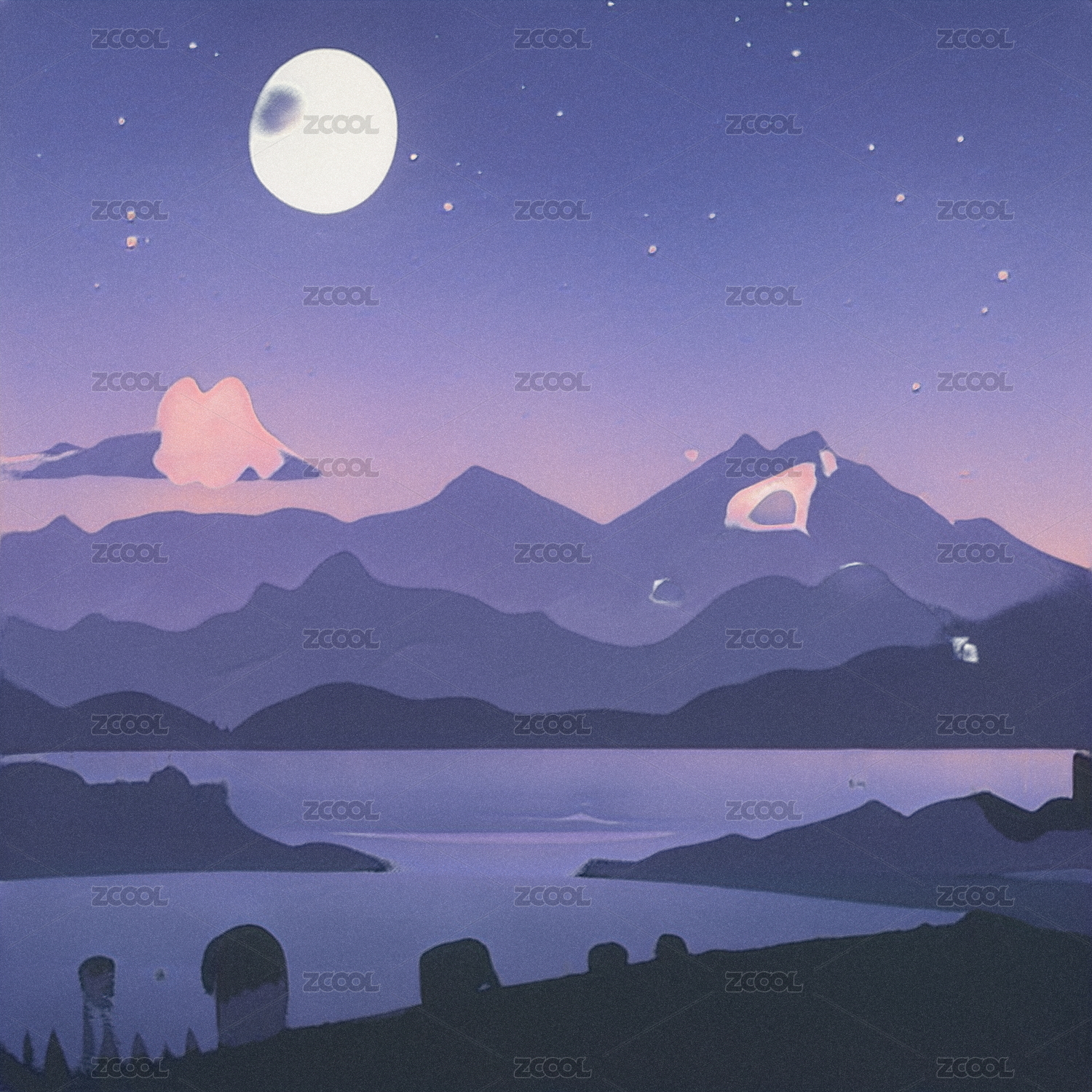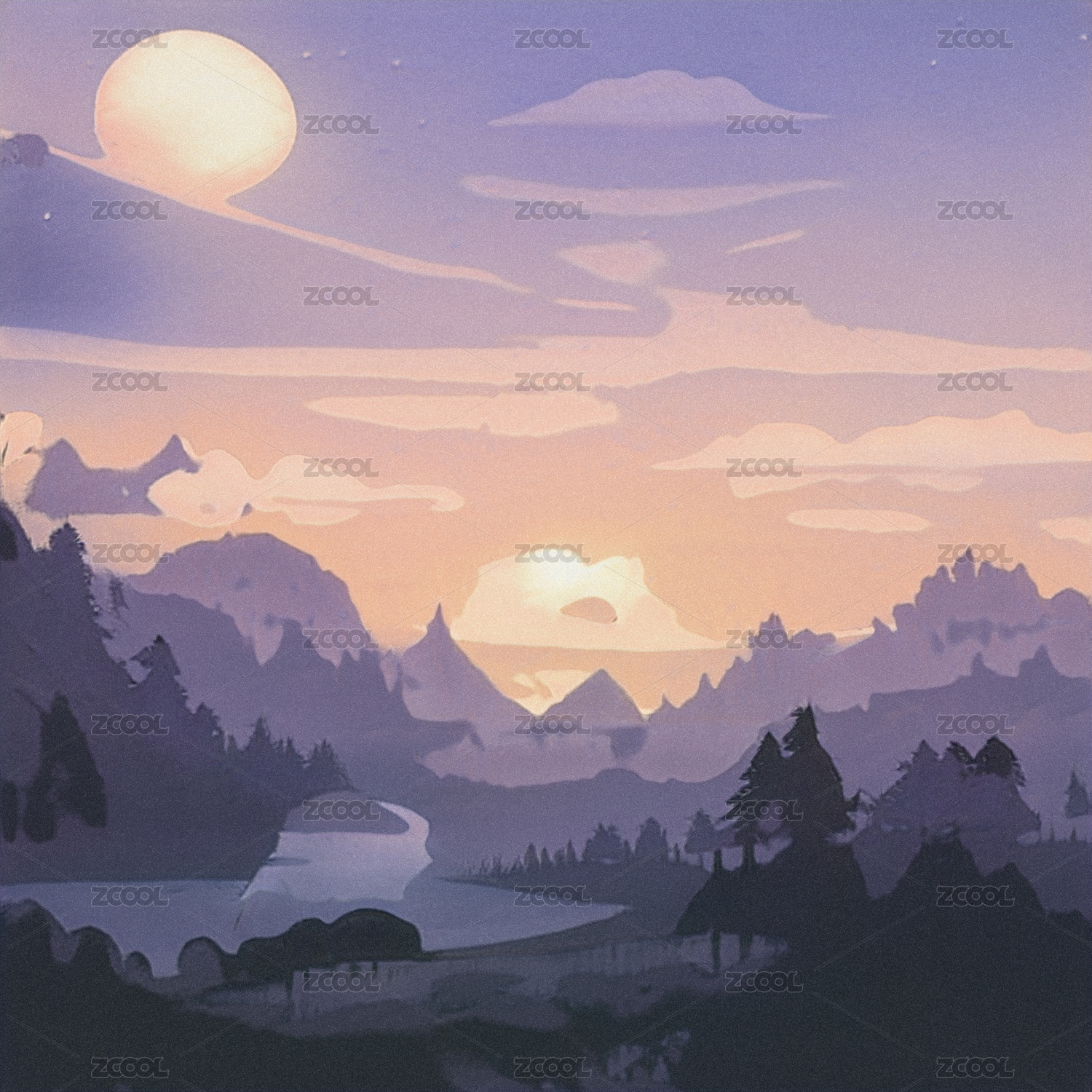 插画,风光,自然,写实,天空,山脉,河流,河,大海,海洋