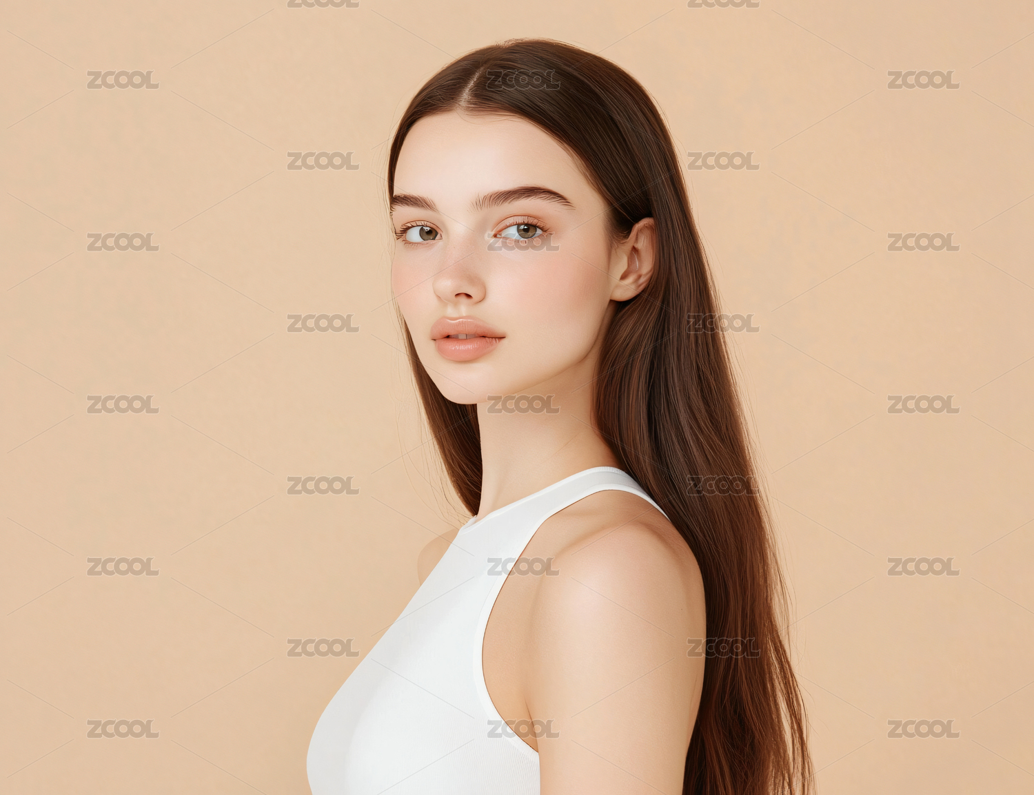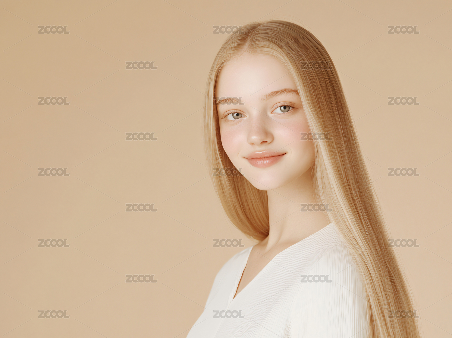 长直发的漂亮欧洲女性肖像