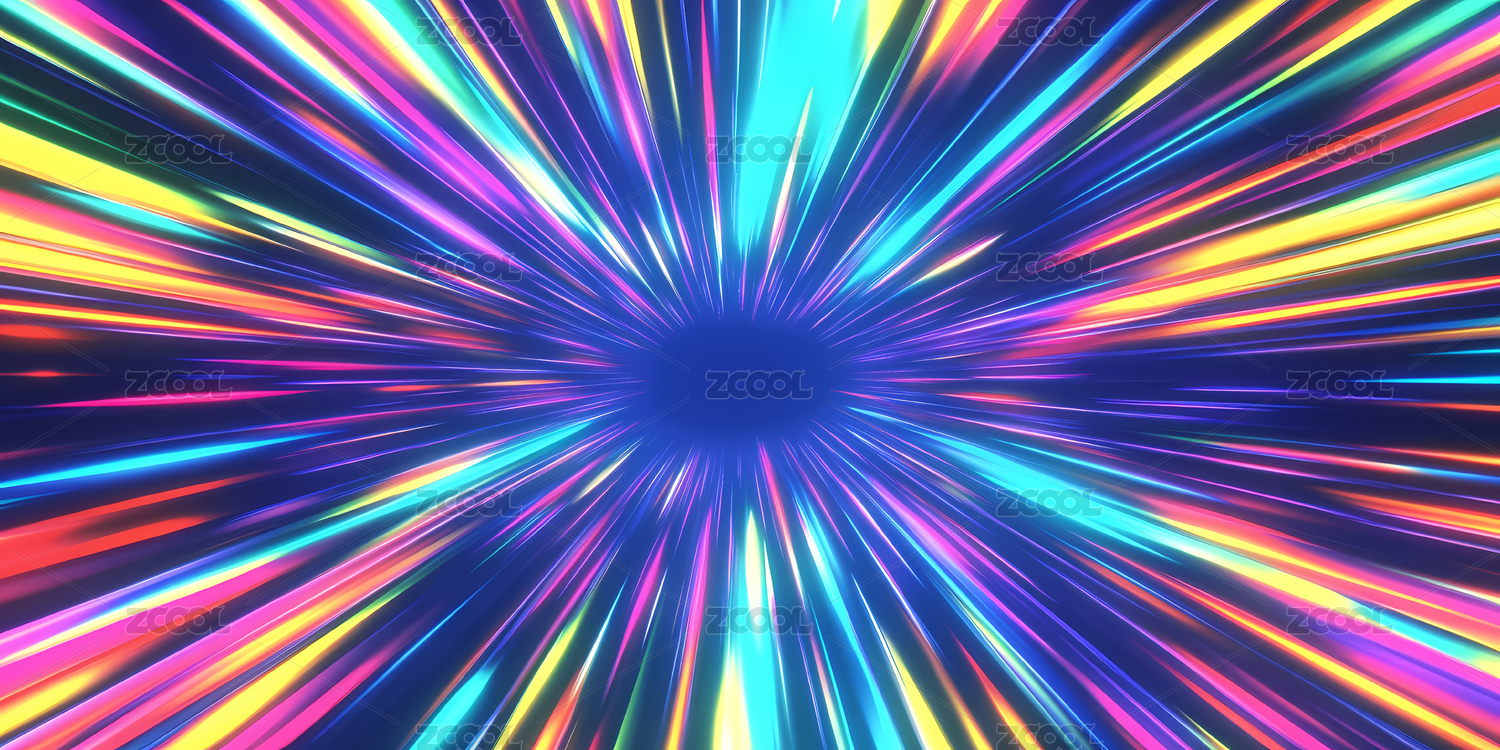 色彩斑斓的射线向中心汇聚互联网科技背景