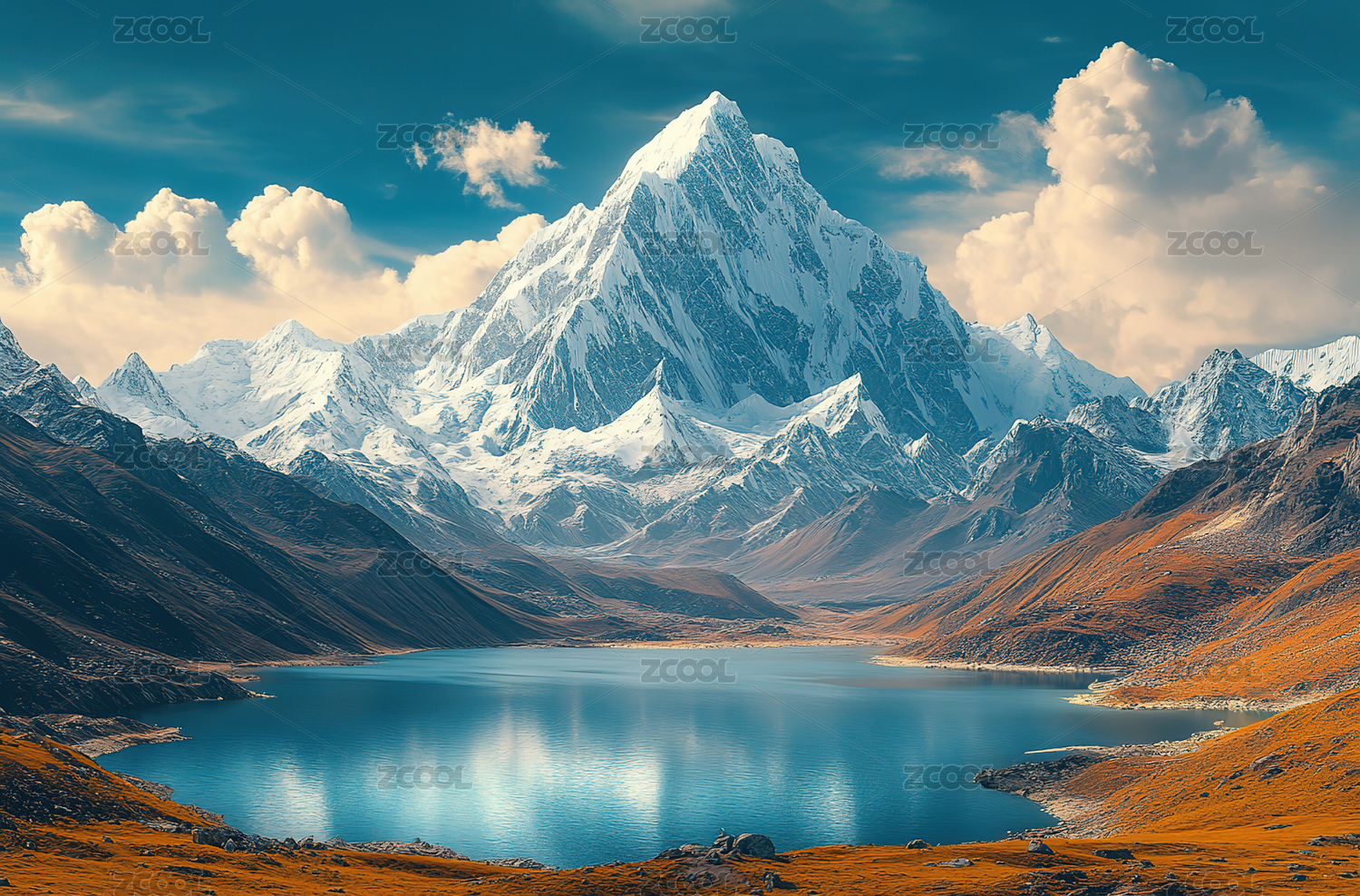 唯美雪山与湖泊倒影