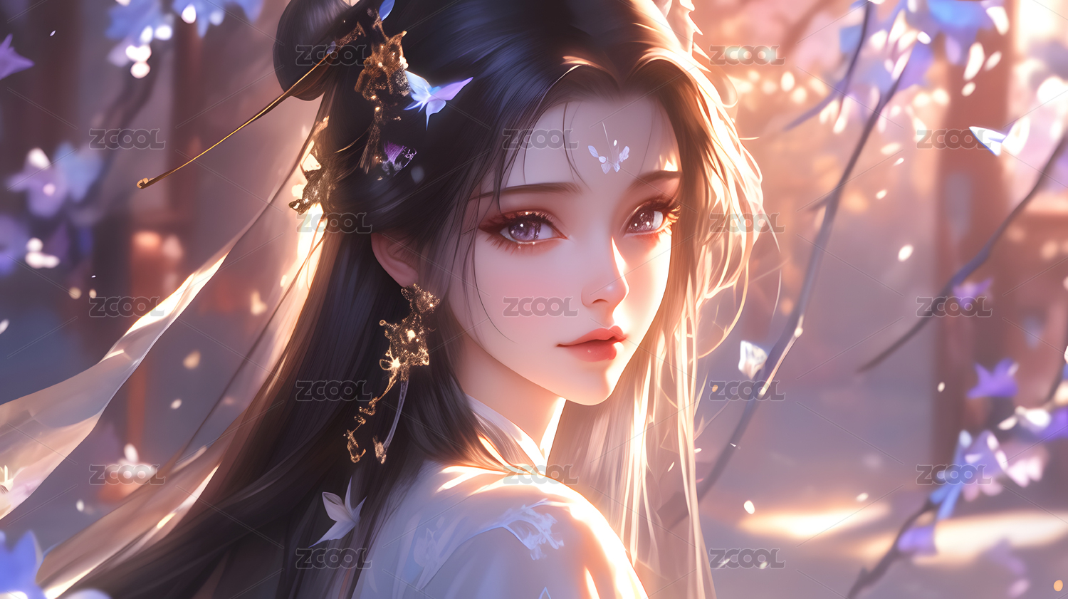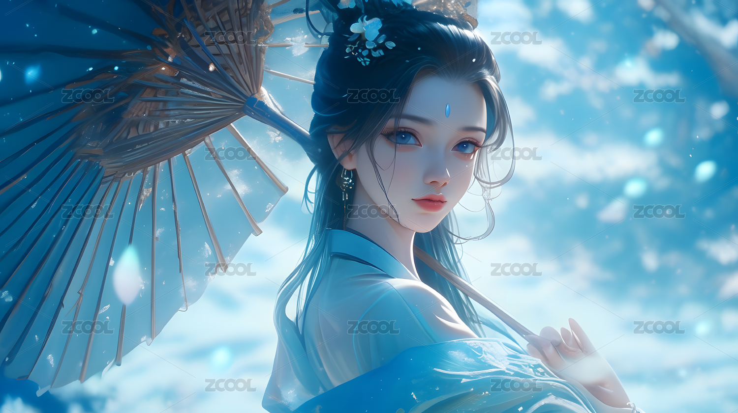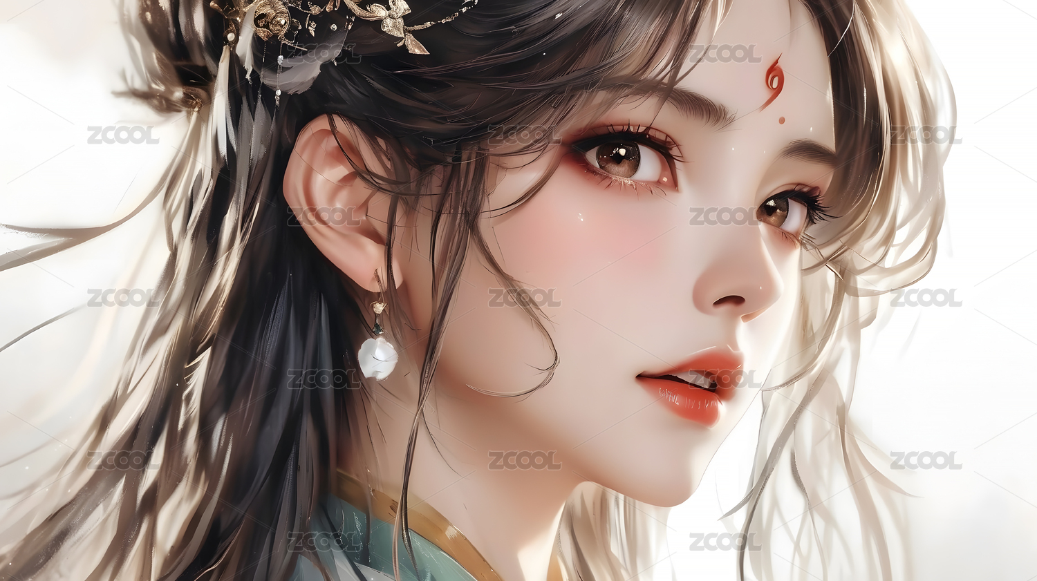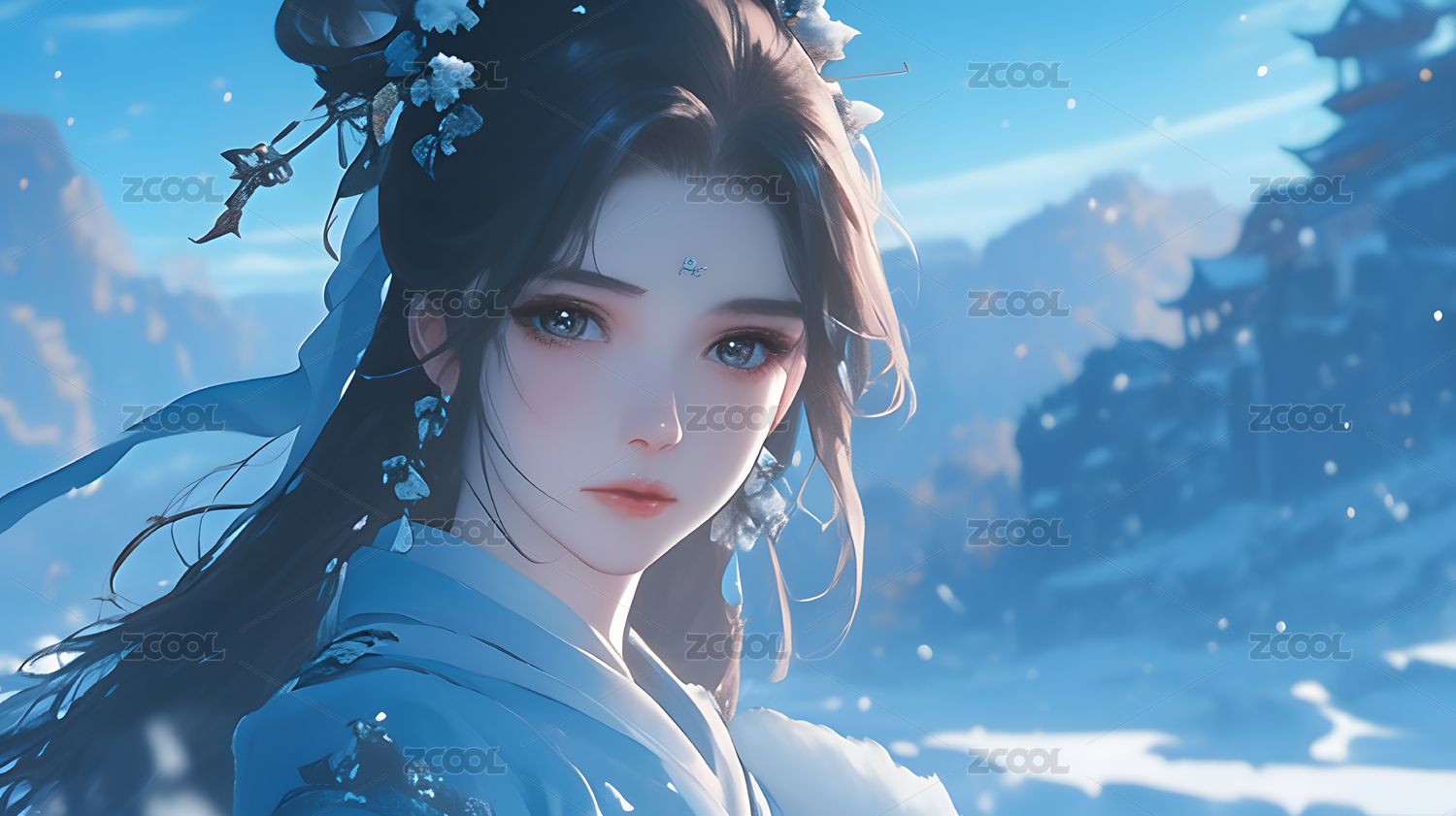 人像,柔美,少女,精致,古风,国风,雪花,发饰