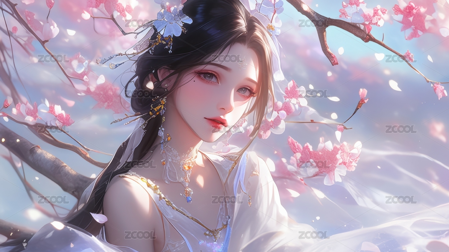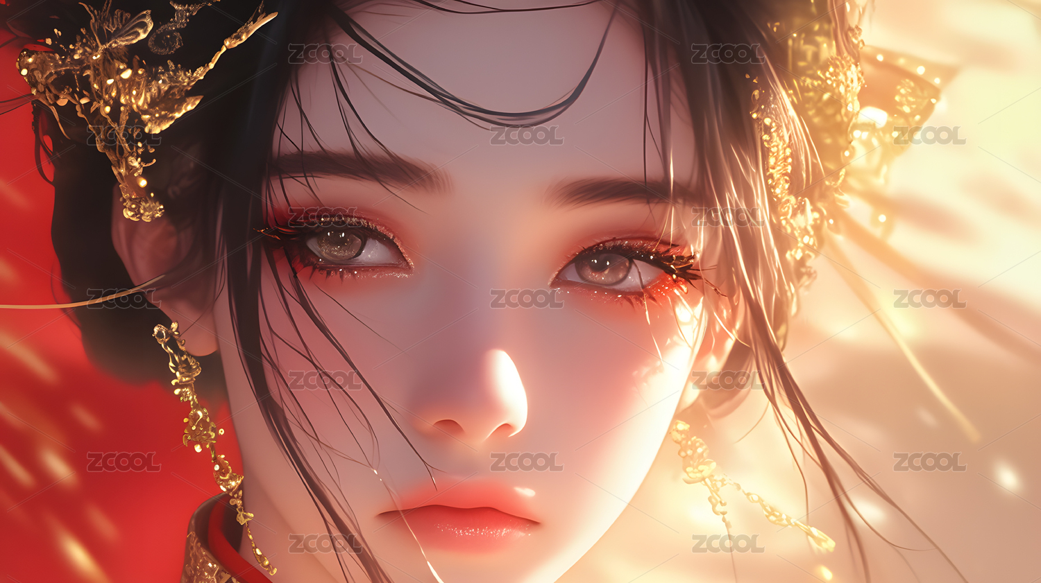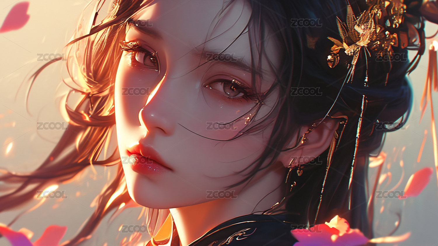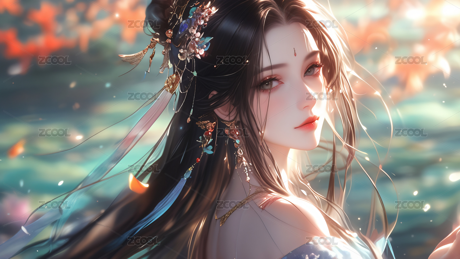 人像,柔美,少女,精致,古风,国风,雪花,发饰