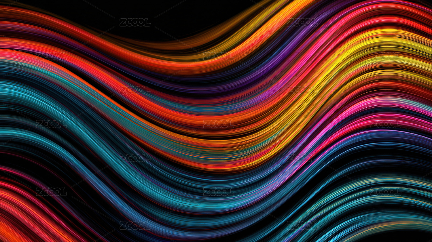 糖果色发光线条彩带纹理抽象壁纸背景。
