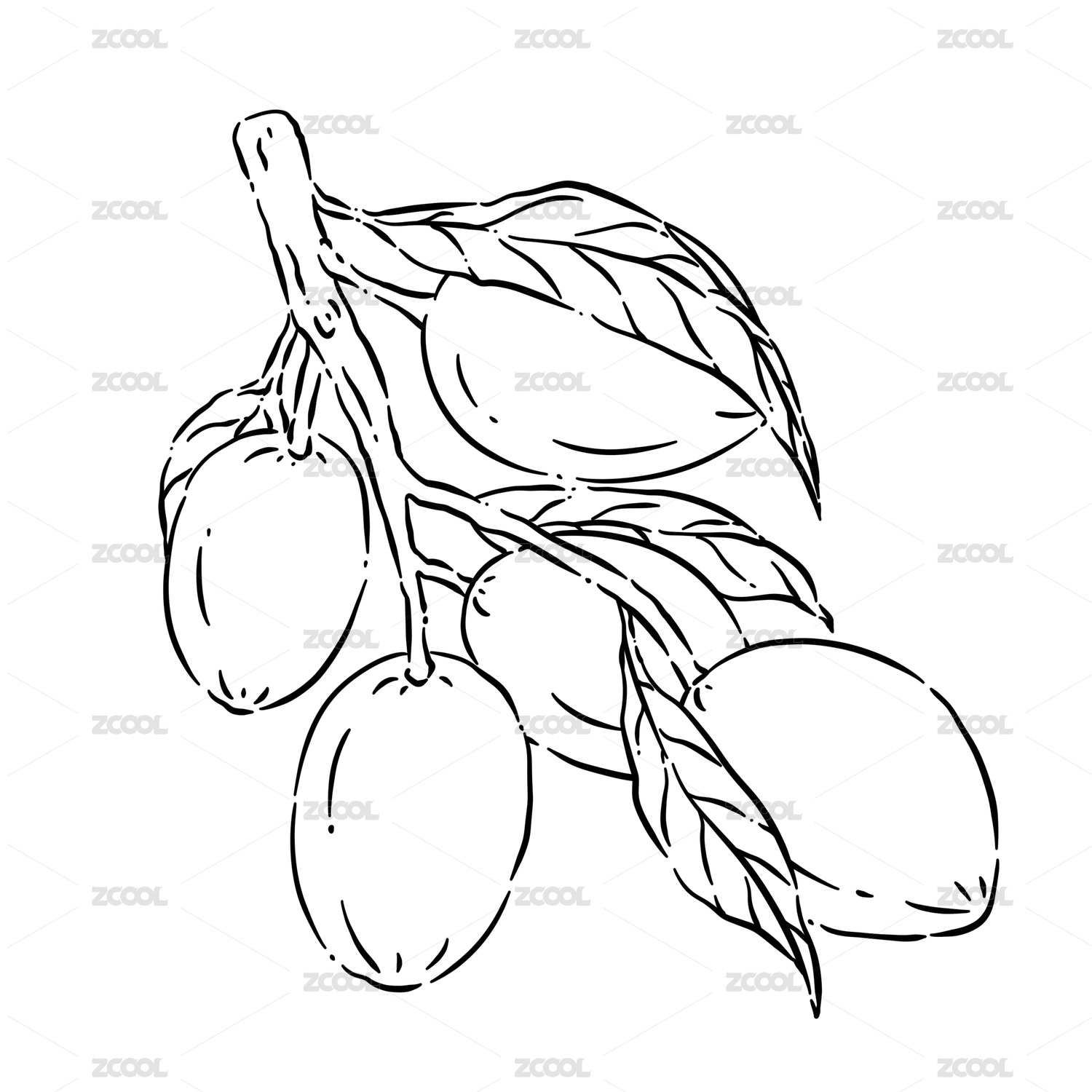 手绘卡通橄榄线稿