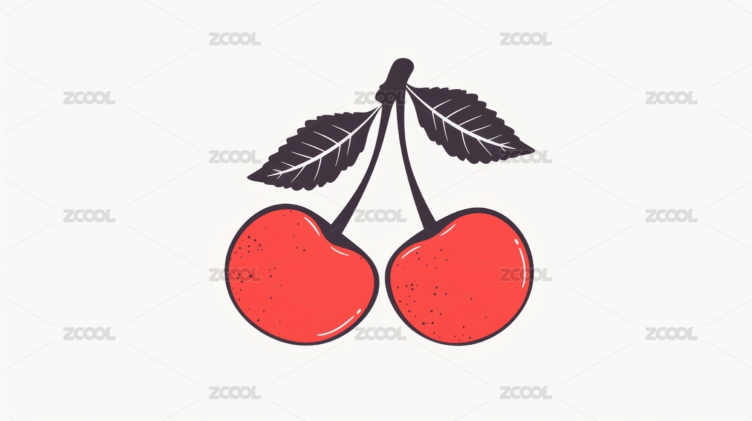樱桃,水果,食物,甜食,红色,绿色,叶子,卡通,插画,素描