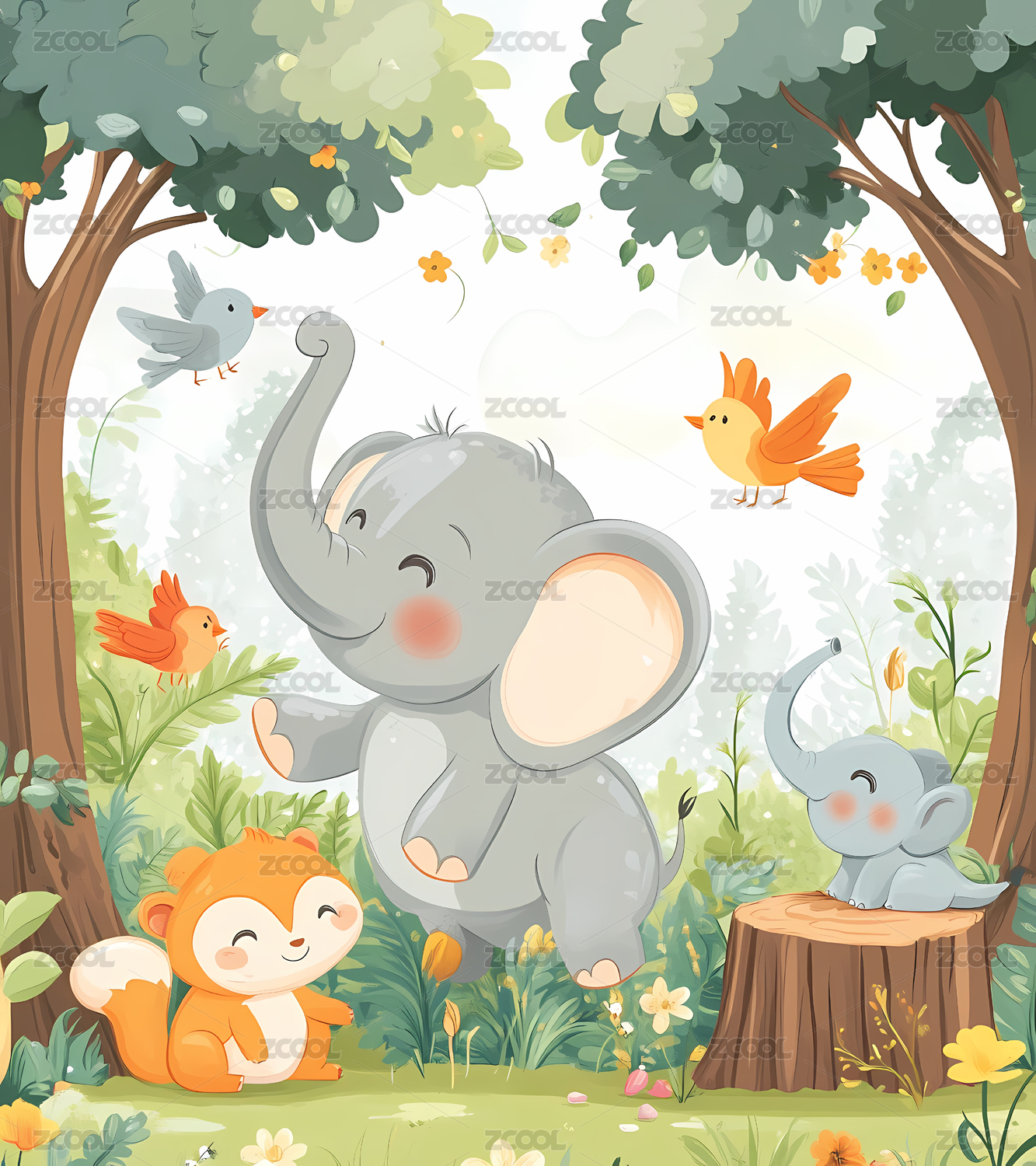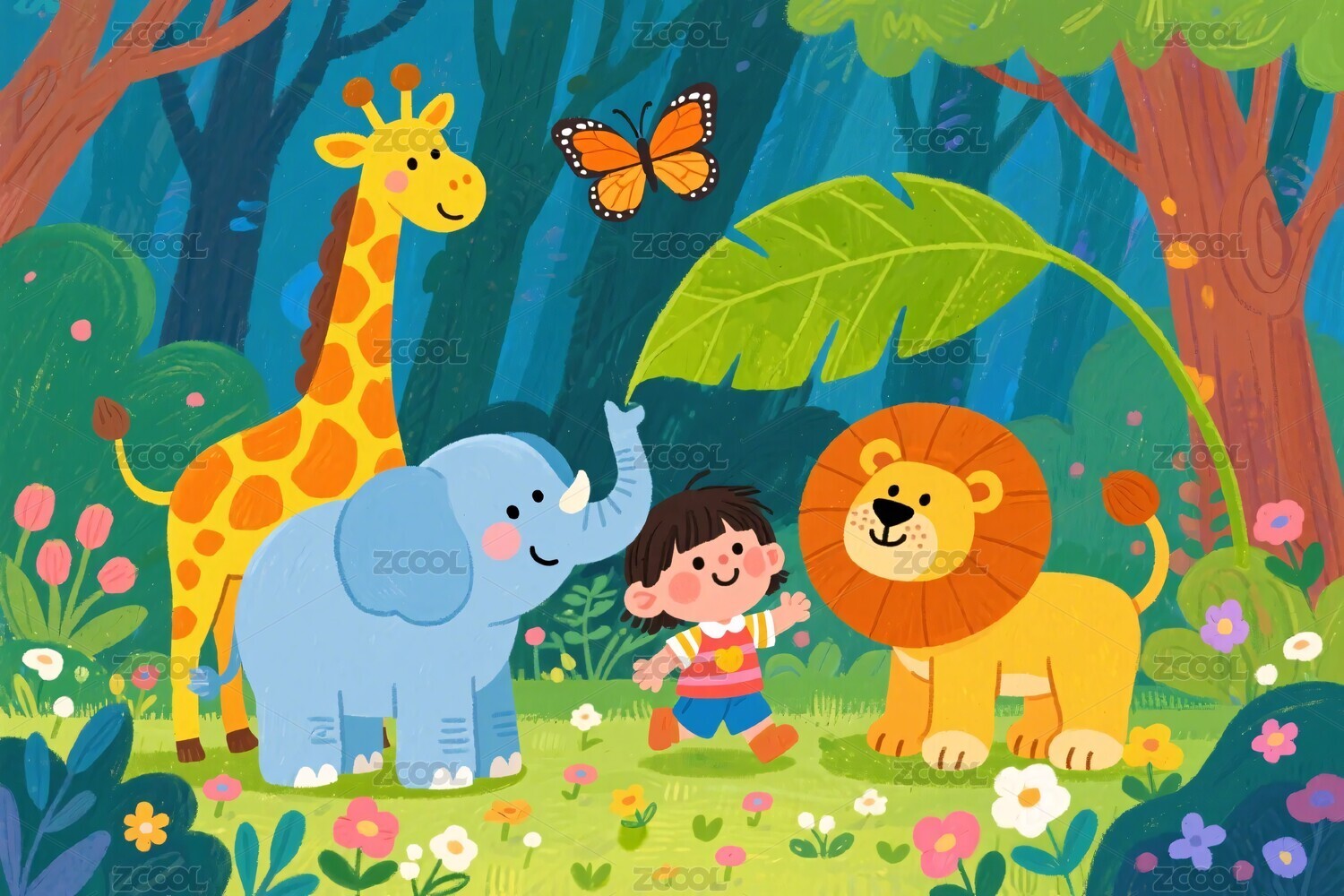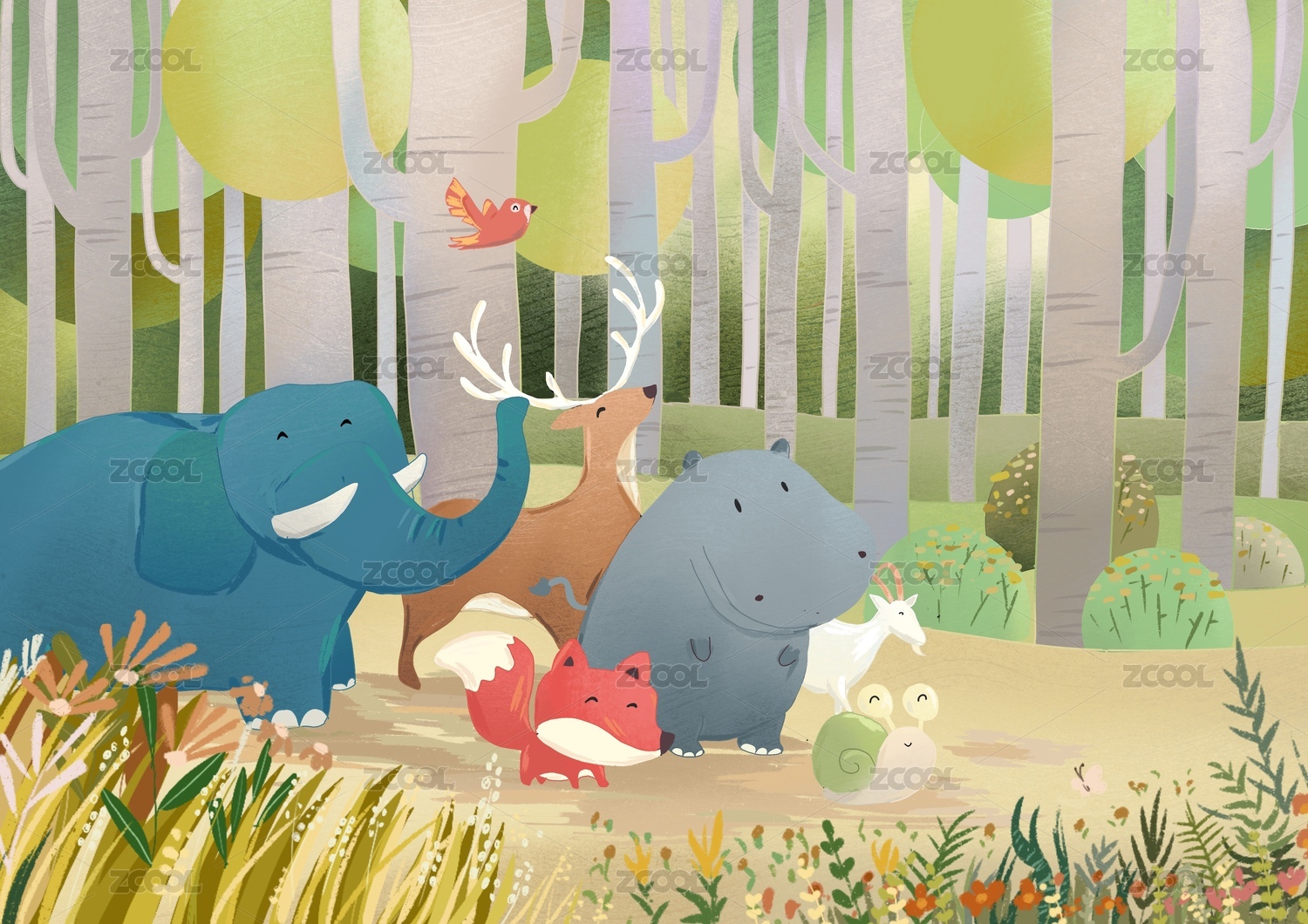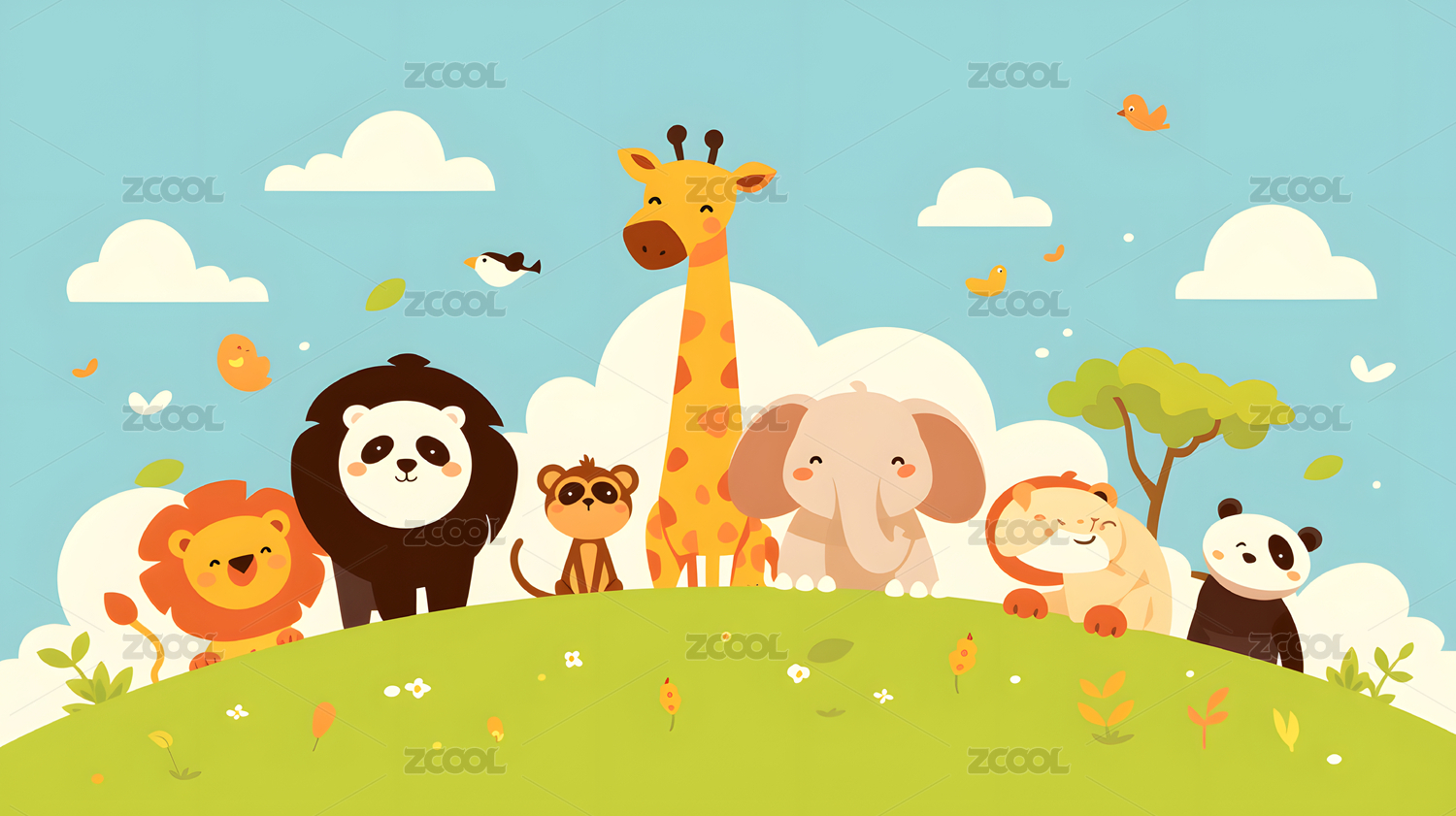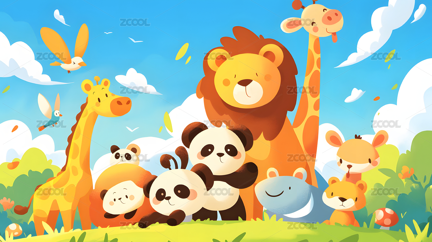 插画,户外,快乐,自然,节日,气球,夏天,礼物,动物,天空