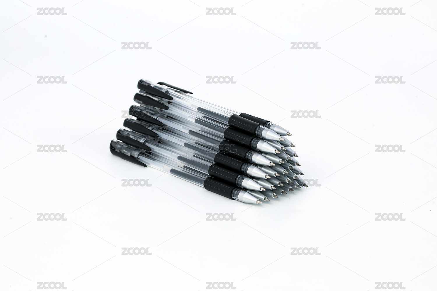 堆成三角形的黑色中性笔