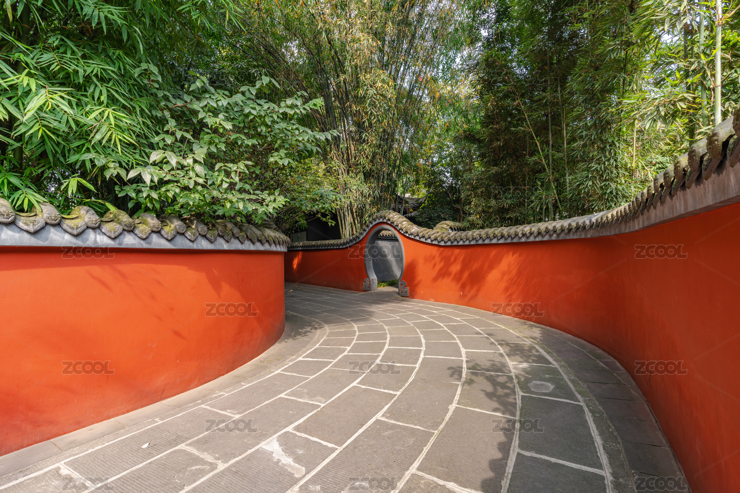 成都武侯祠博物馆中式园林红墙竹林小路白昼