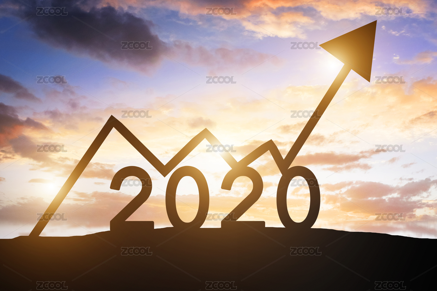 2020年新的开始新的希望皇冠向上的箭头走势趋势胜利成功剪影概念