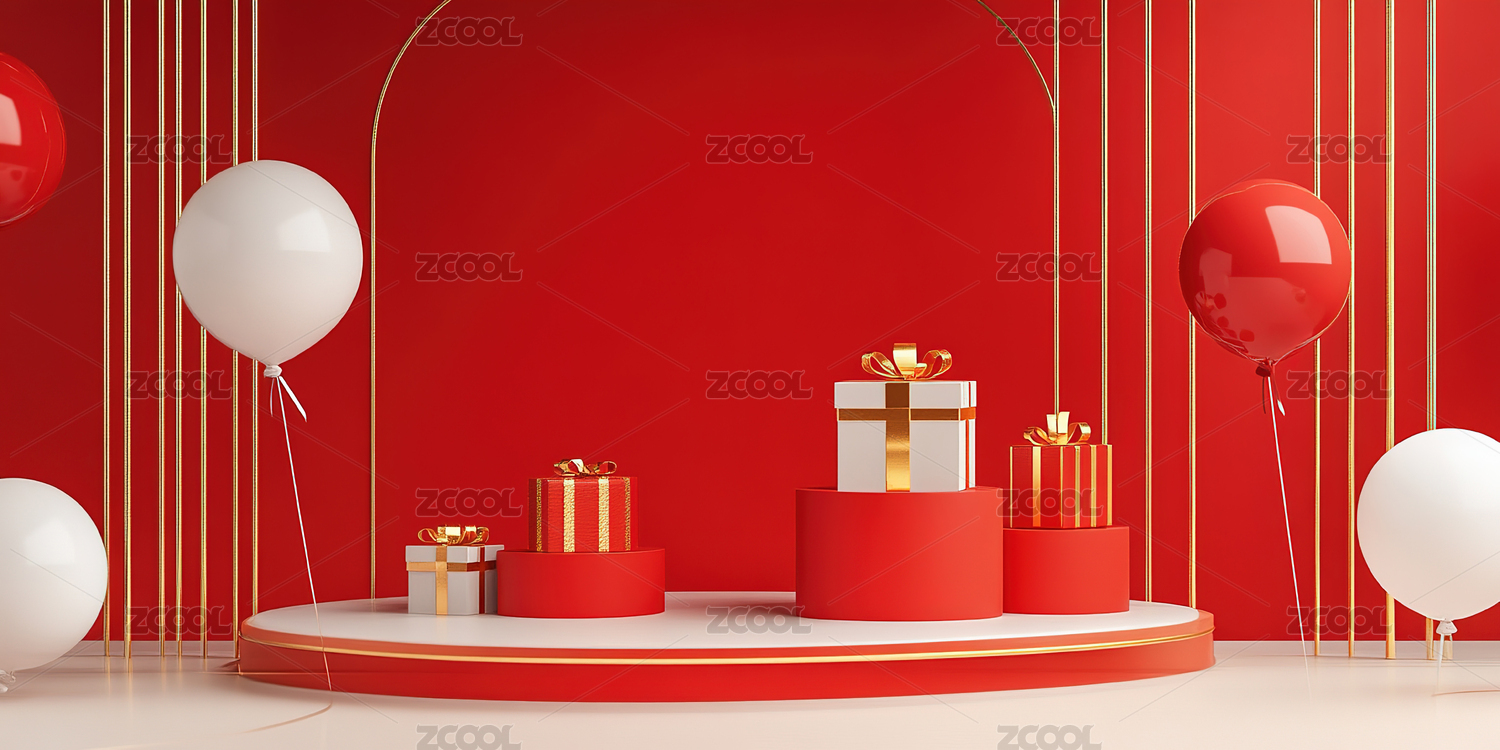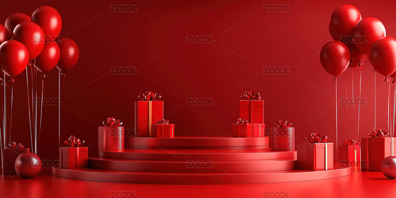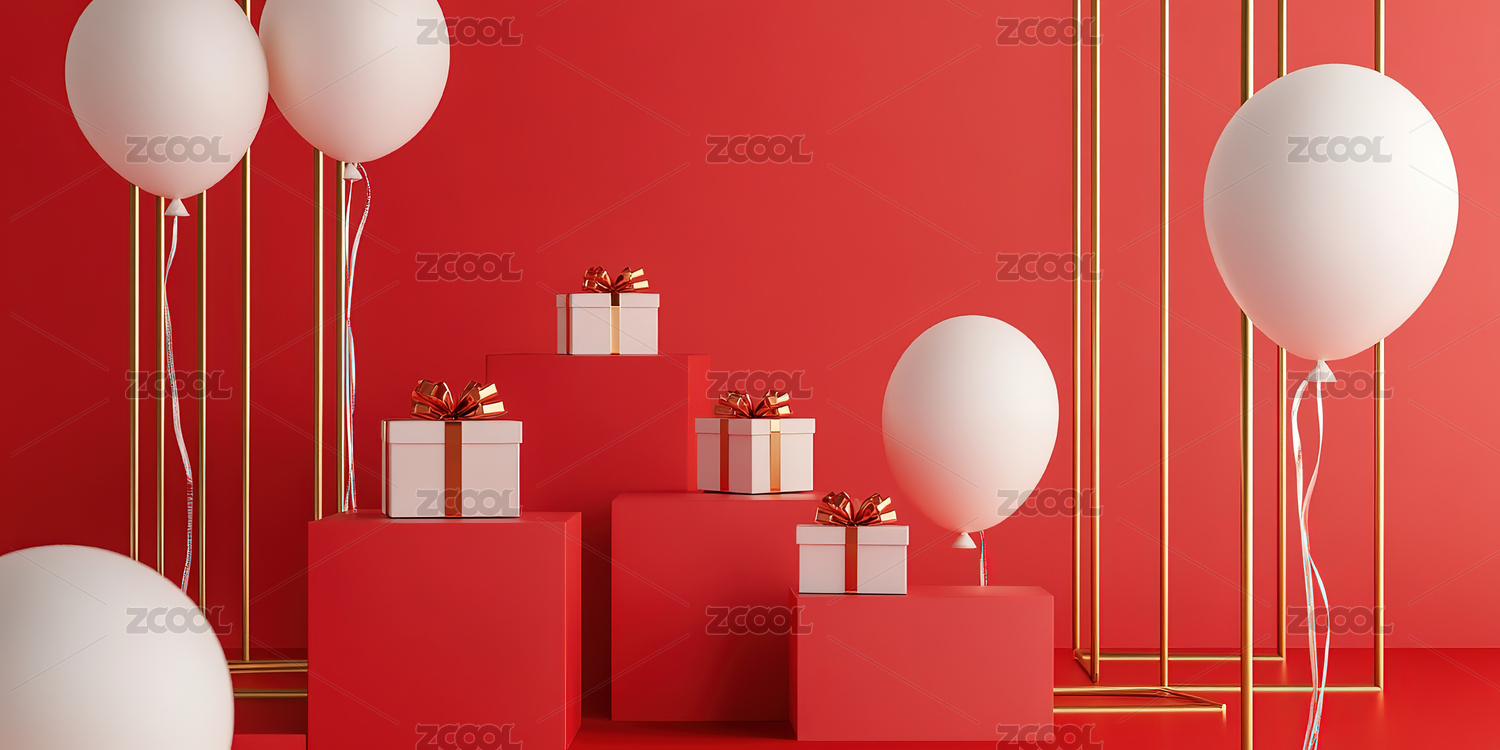 红色主题礼物与气球装饰