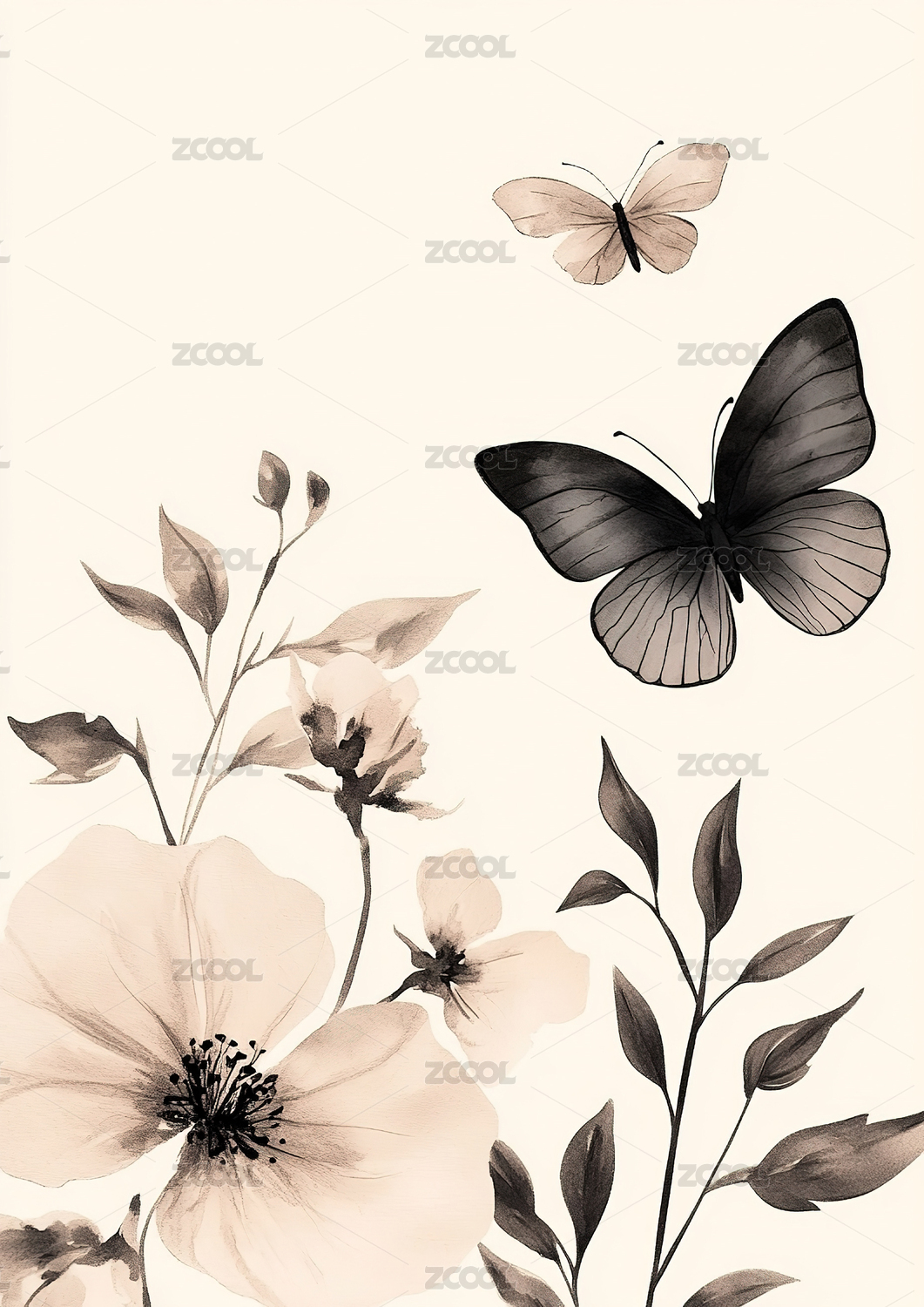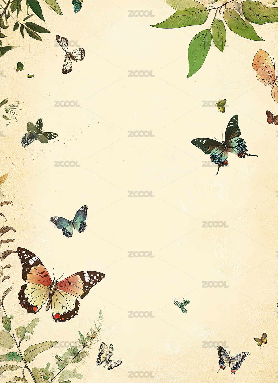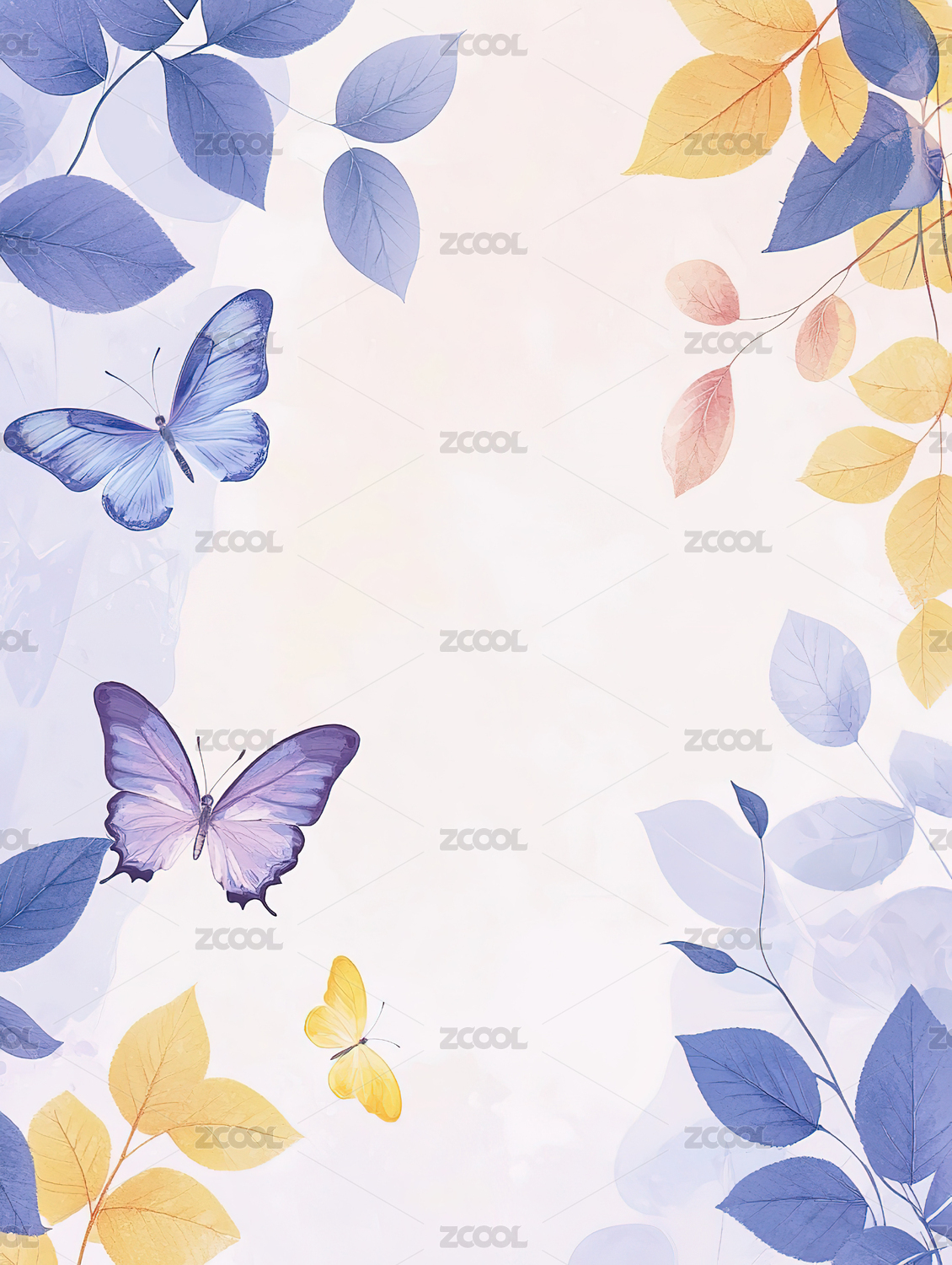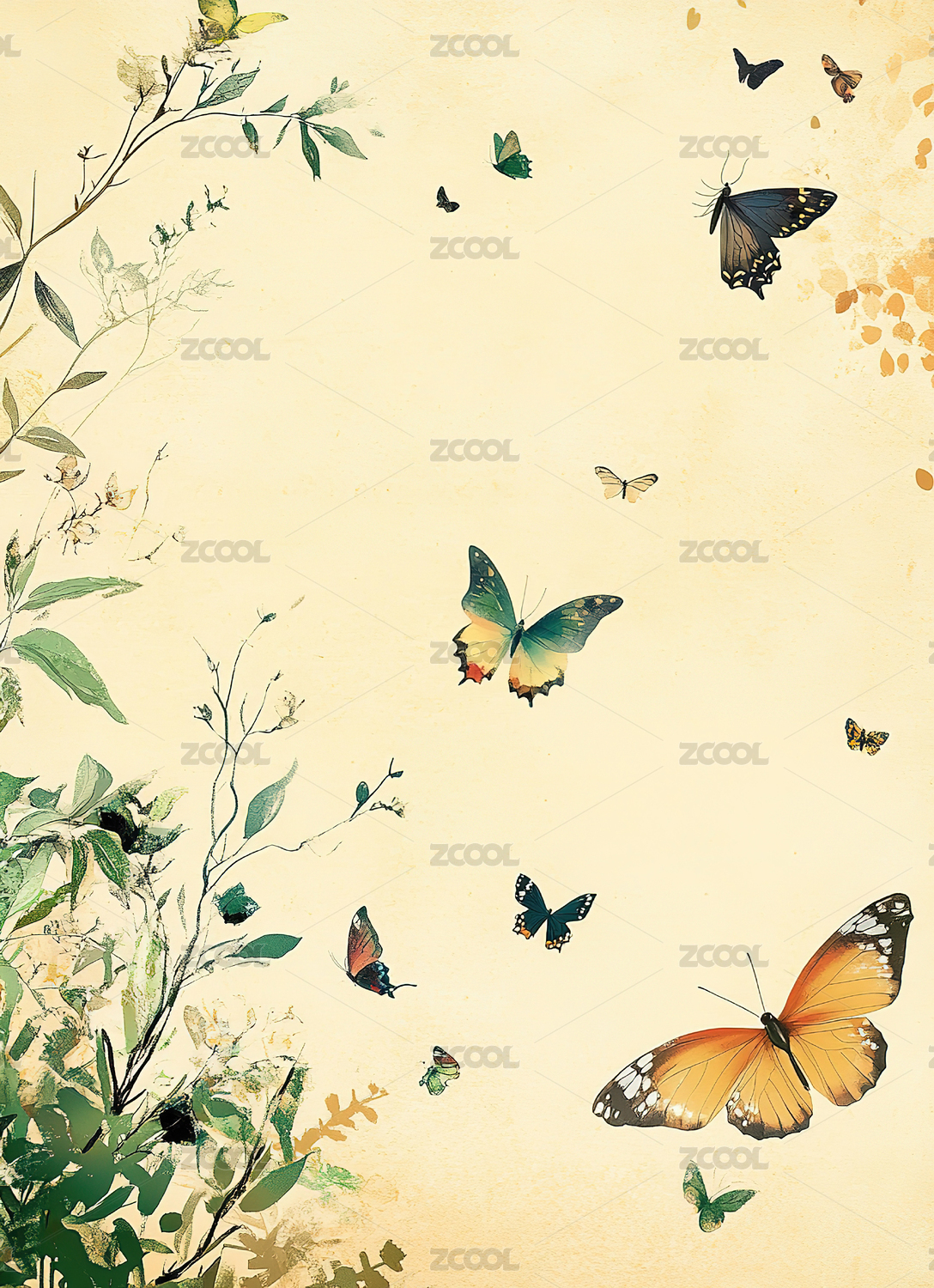 数码复古水彩花朵蝴蝶装饰抽象图形海报背景