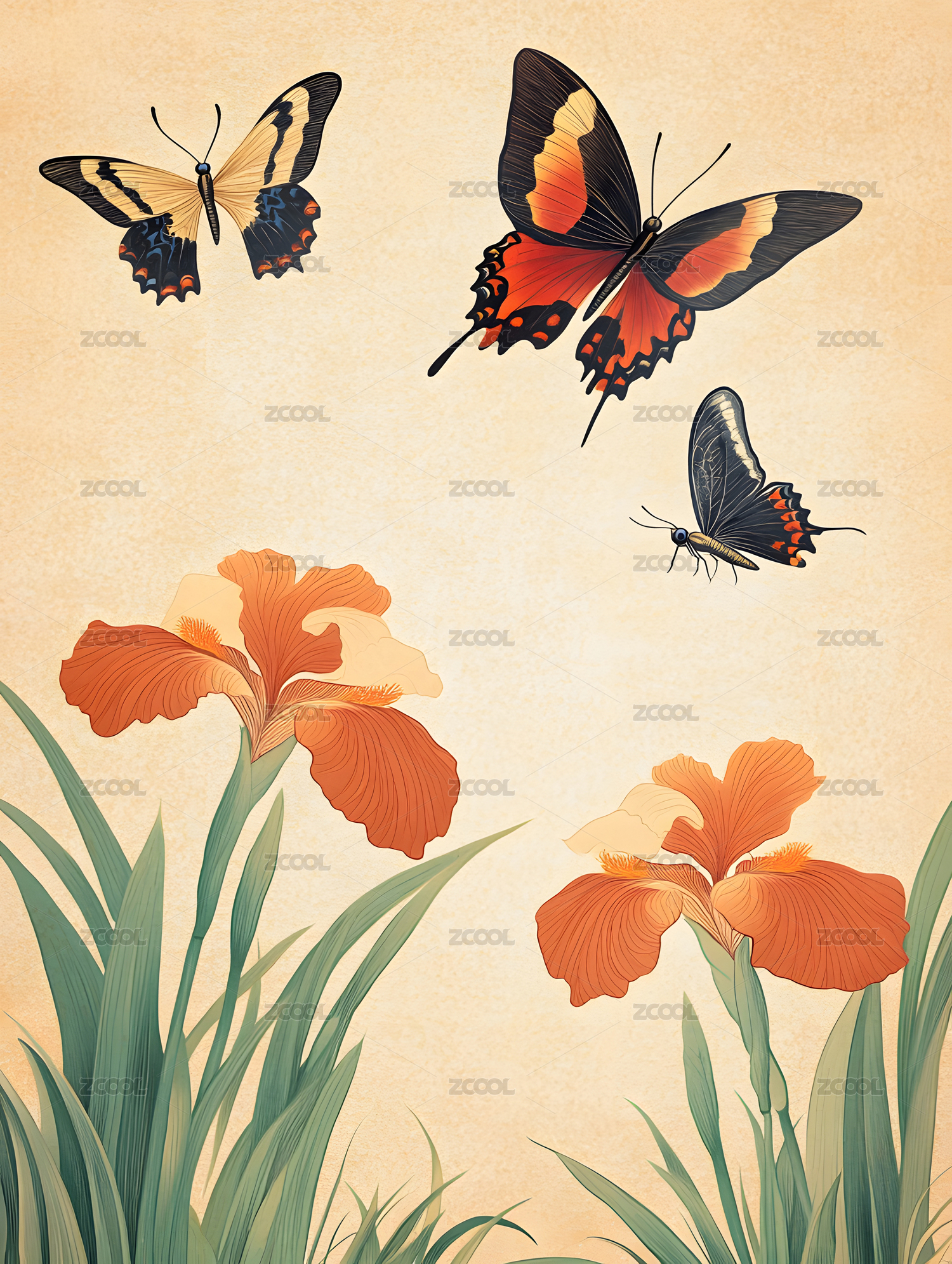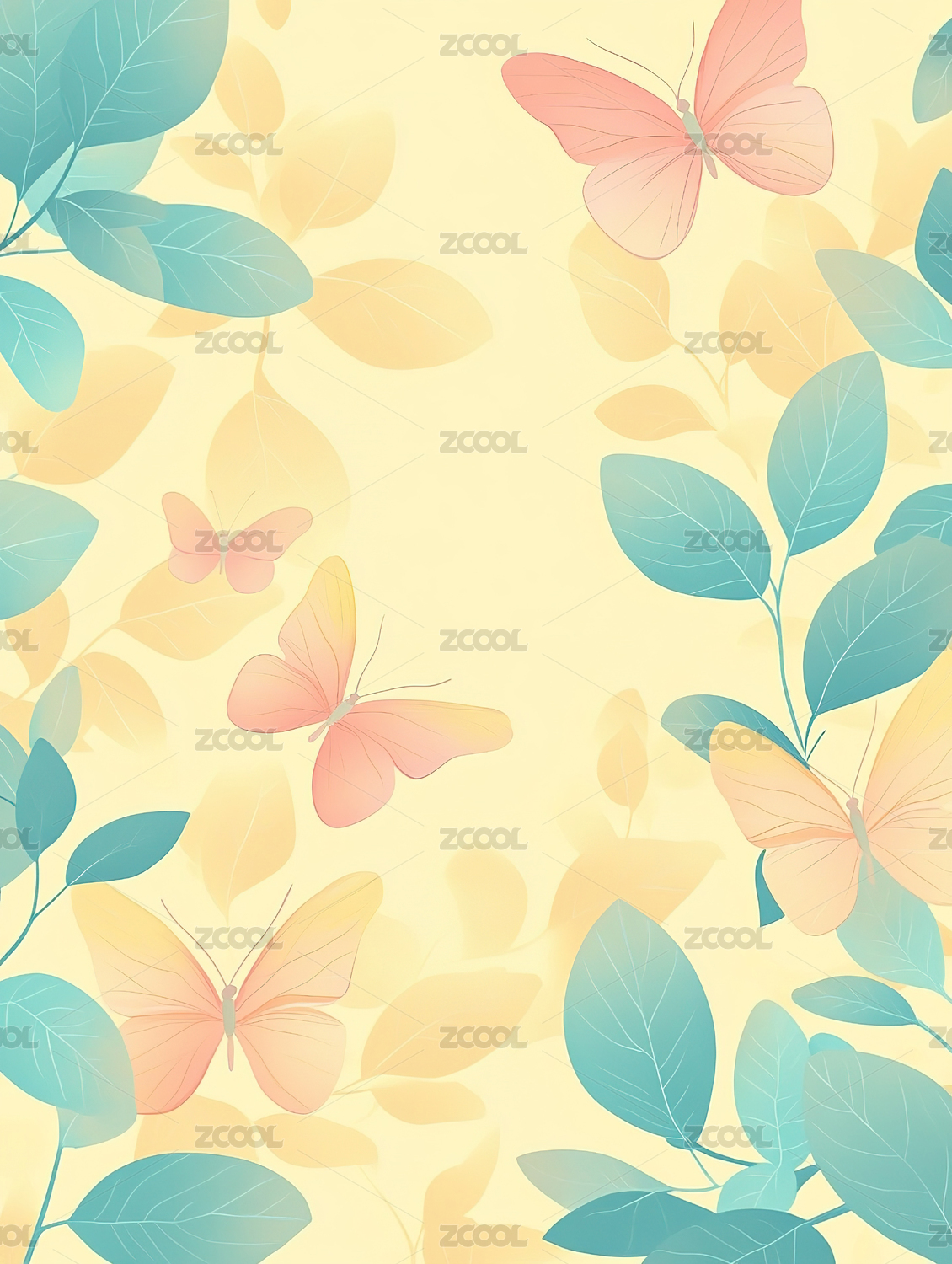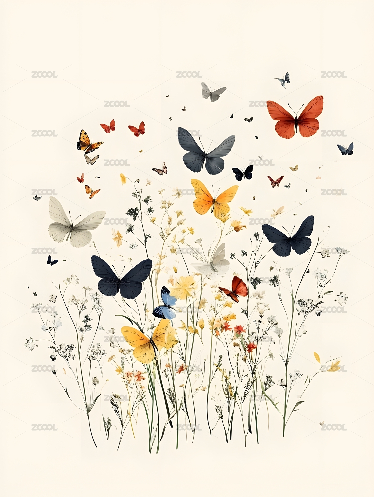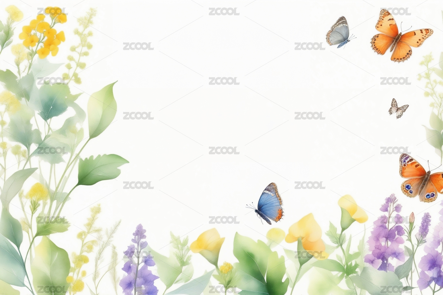 数码复古水彩花朵蝴蝶装饰抽象图形海报背景