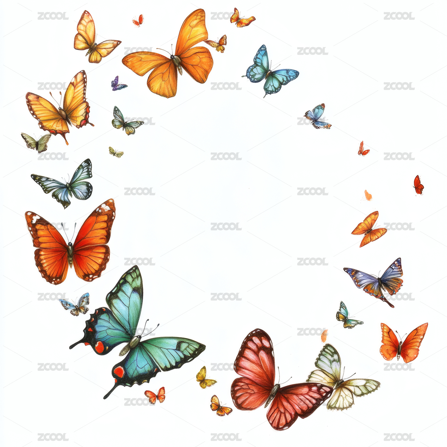 多彩蝴蝶环绕飞舞,组成美丽圆环