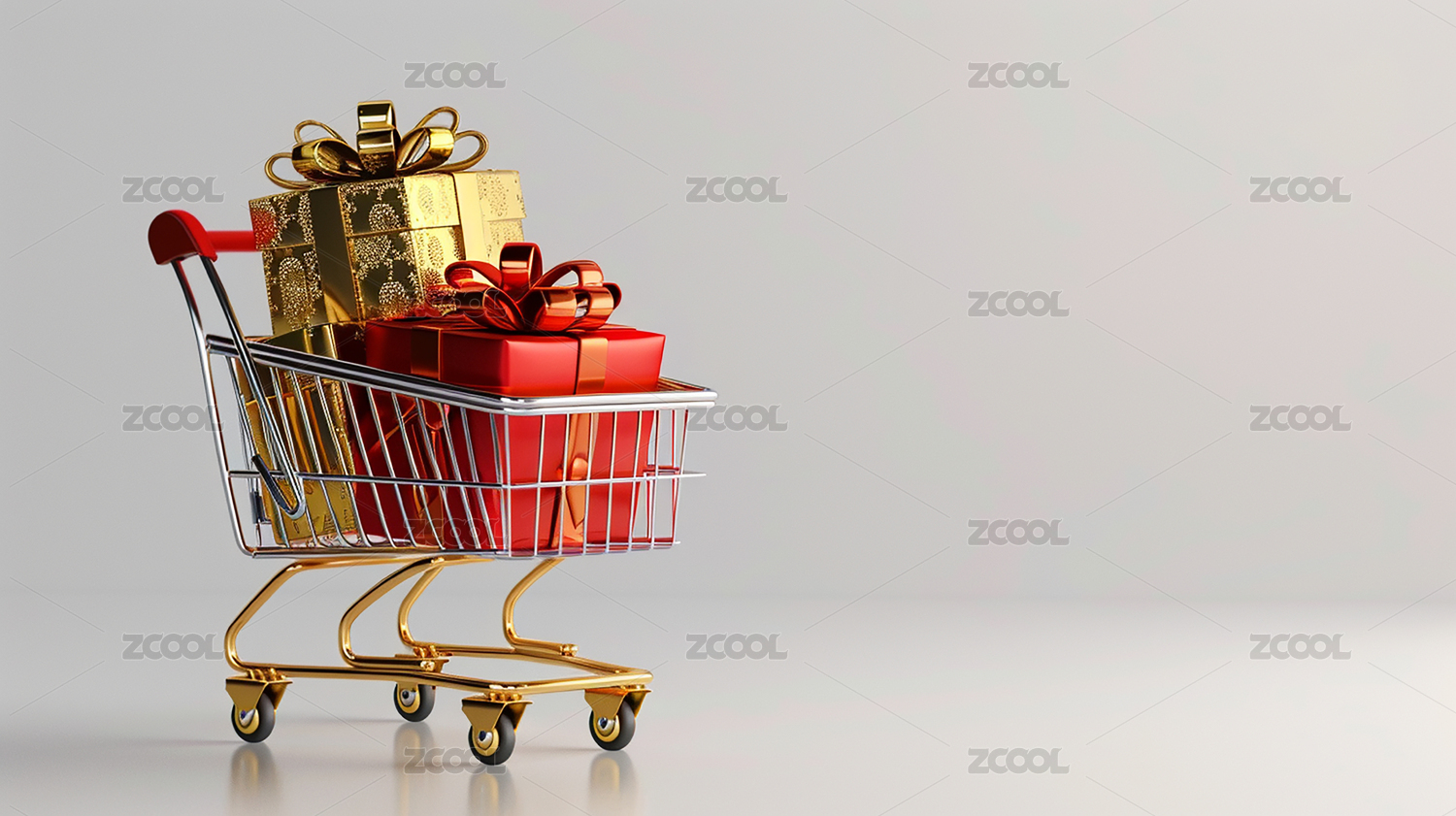 一辆装满礼盒的购物车