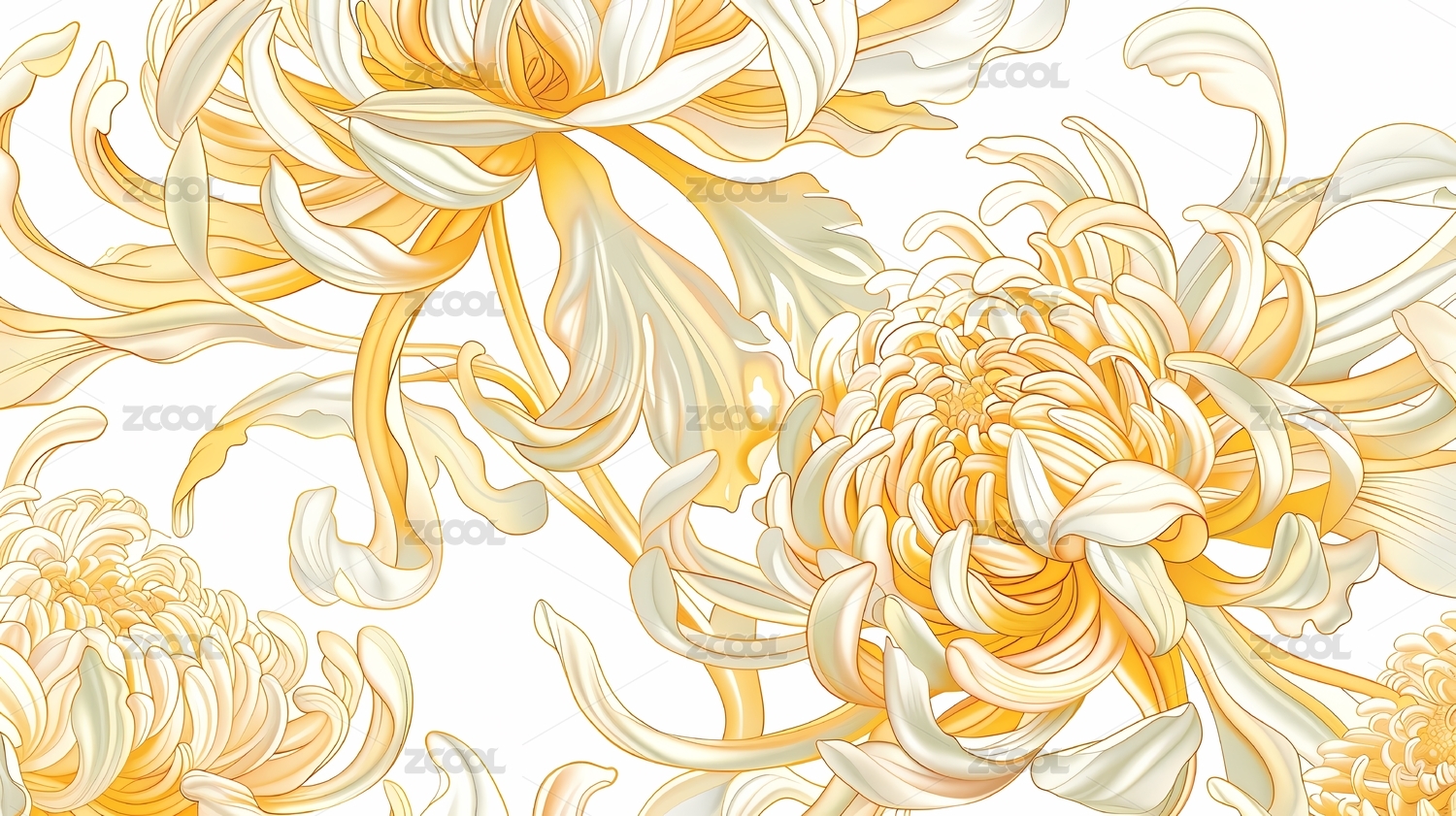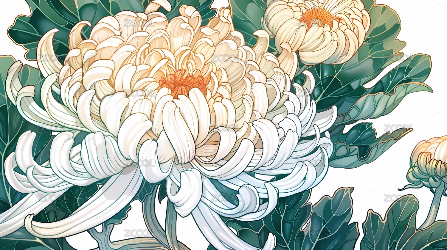 重阳时节美丽菊花插画重阳节中国风赏菊插图