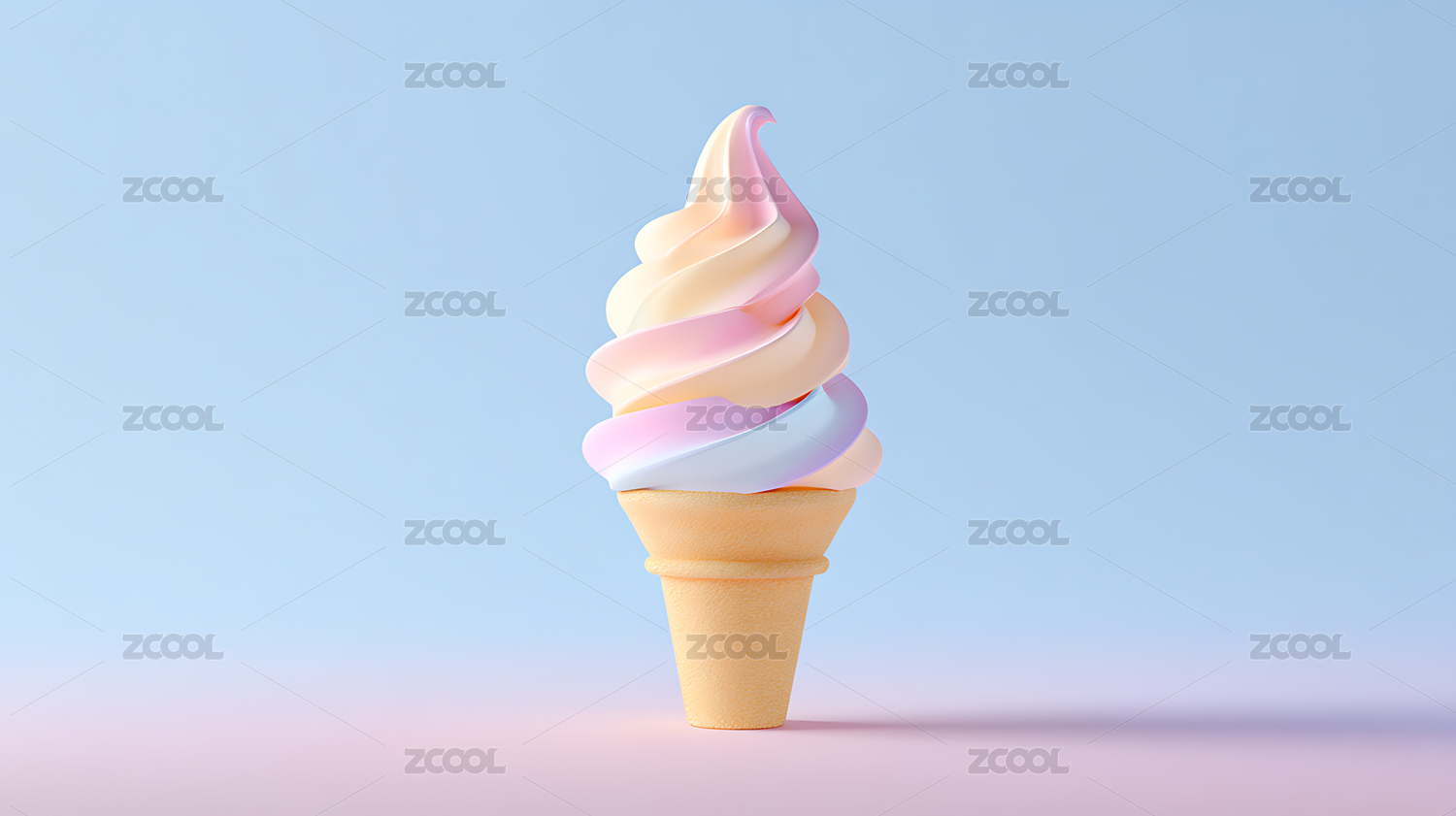 粉红色甜蜜卡通3D冰淇淋雪糕插画