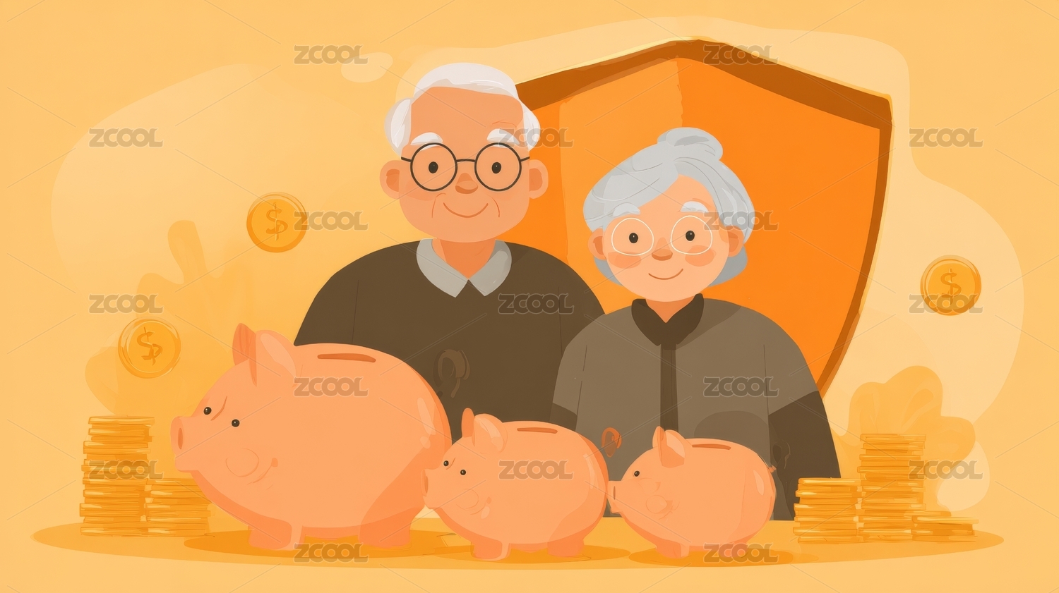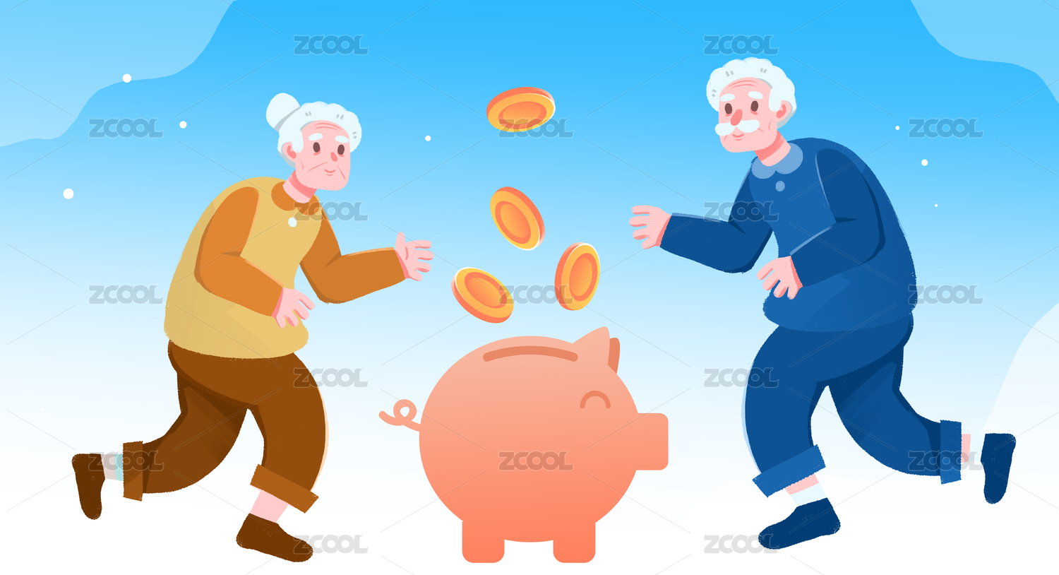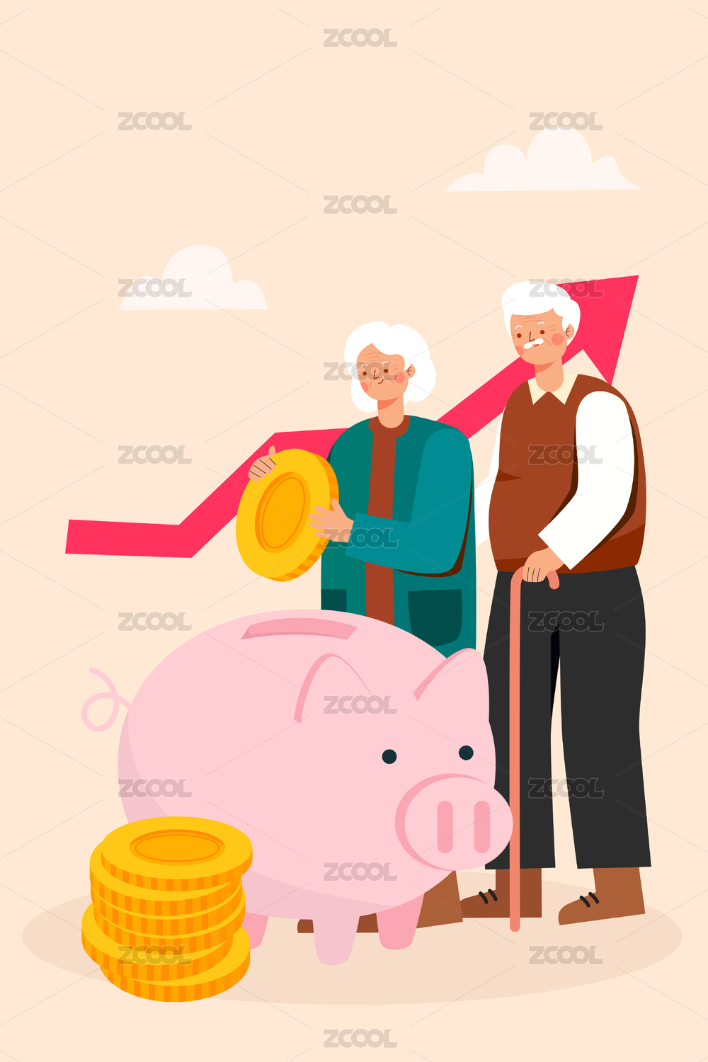 老人健康老年夫妻养老保险亲子游敬老日插画