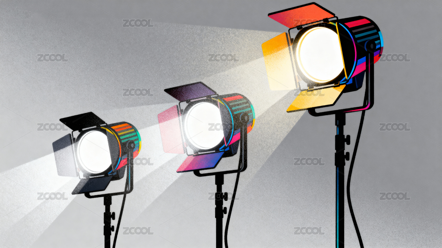 三盏彩色聚光灯照亮场景