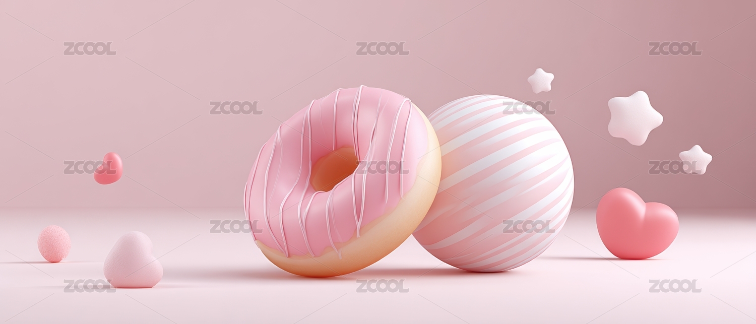 粉色,立体,甜甜圈,甜点,甜品,烘焙,蛋糕,可爱,美食,美味