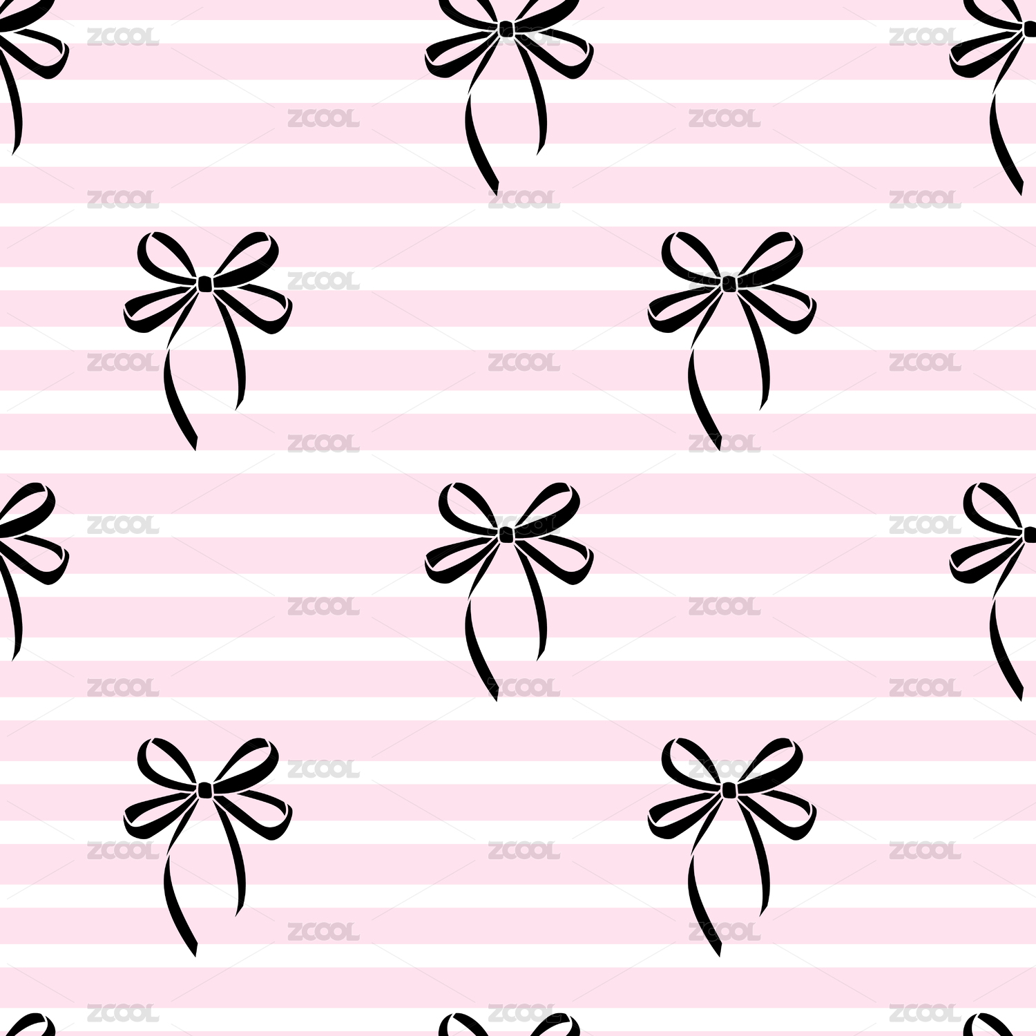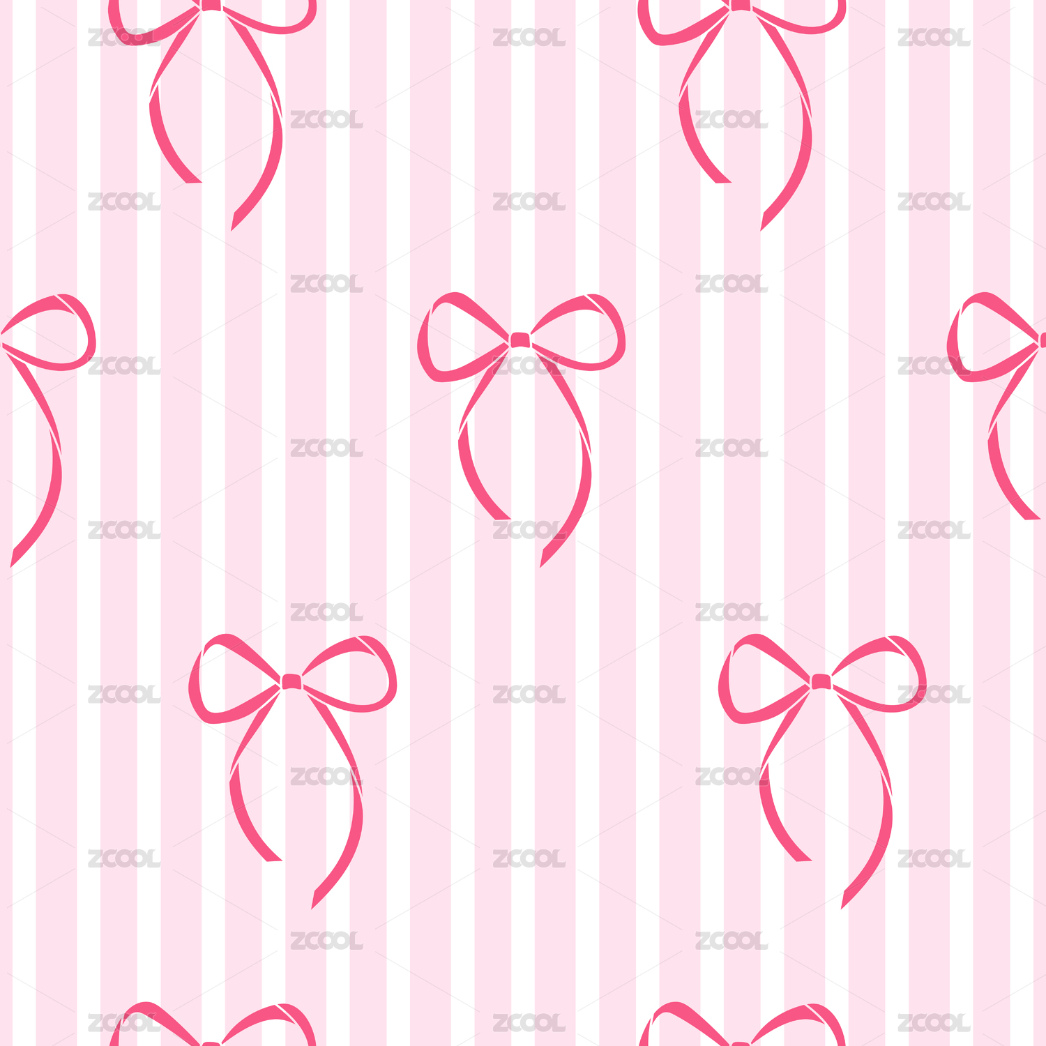 手绘无缝蝴蝶结和爱心在粉色条纹上