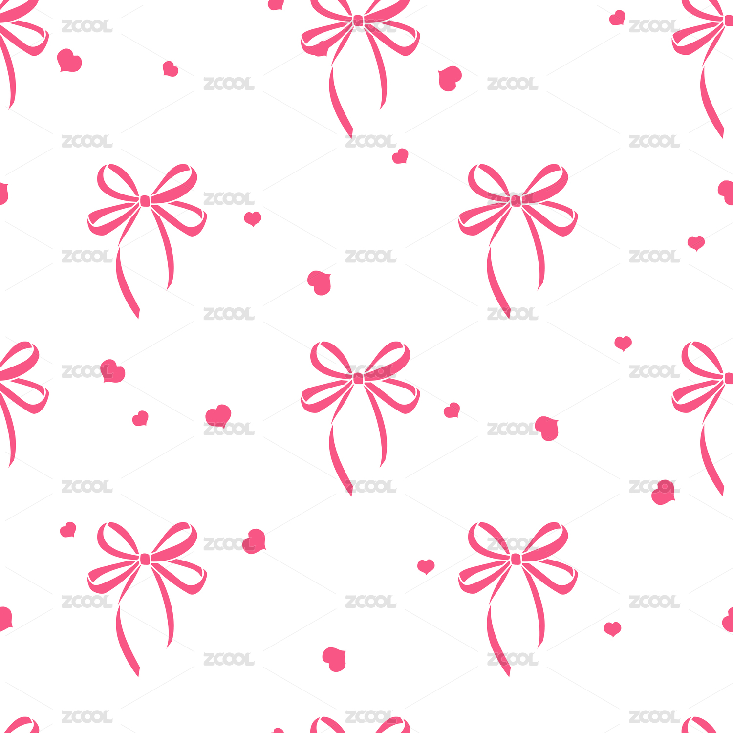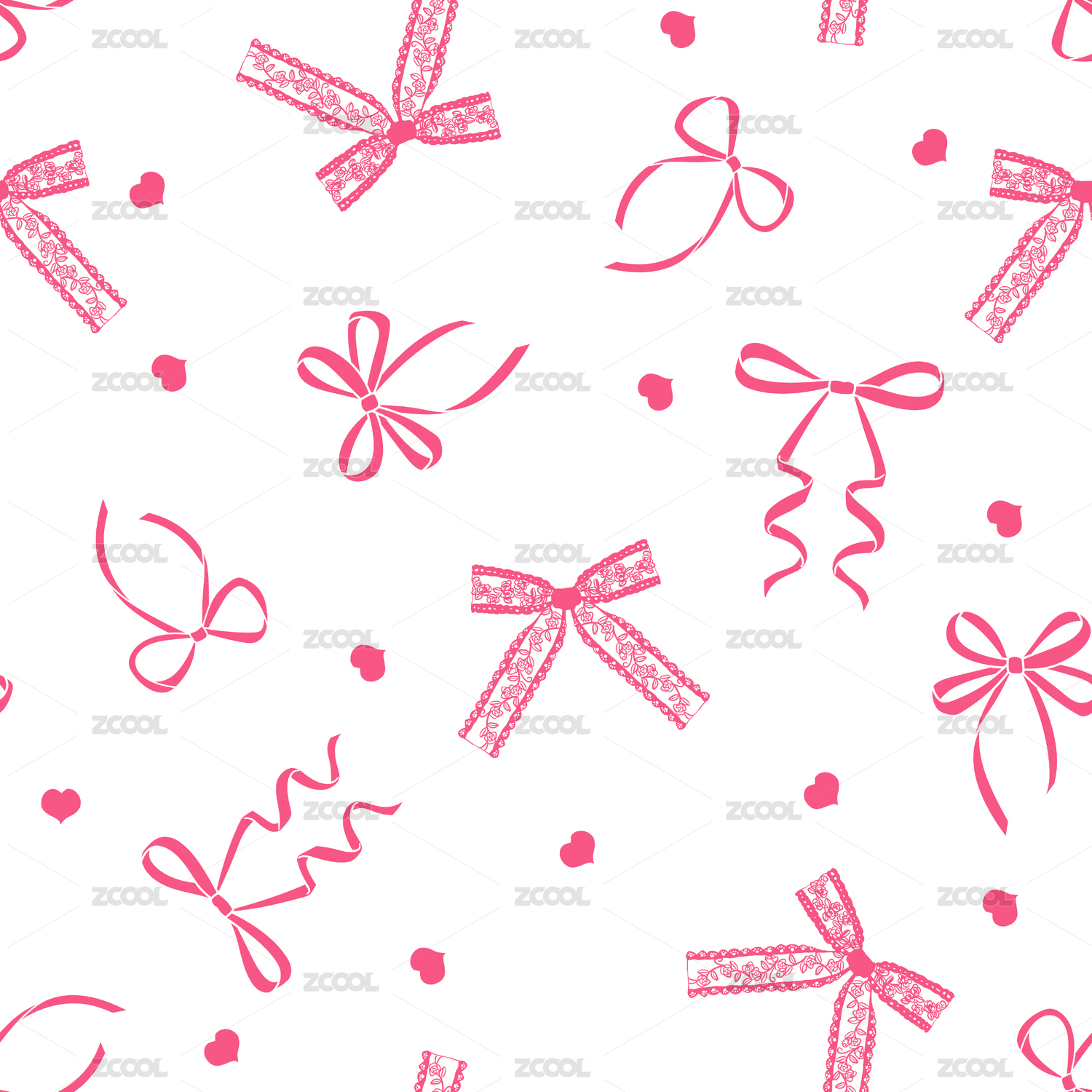 手绘无缝粉色蕾丝蝴蝶结和爱心