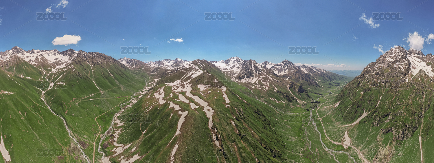航拍中国新疆伊犁夏塔木扎尔特雪山全景