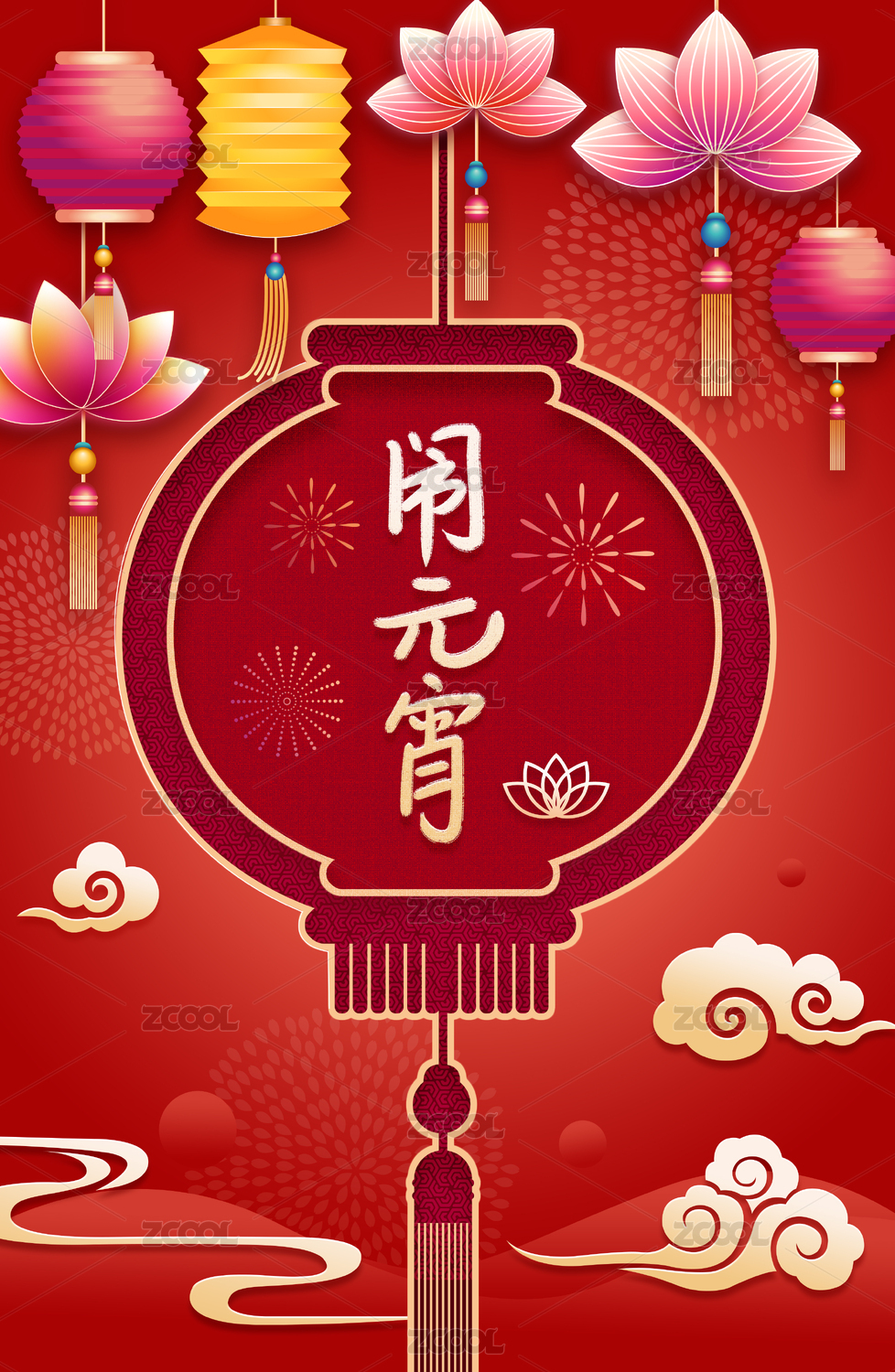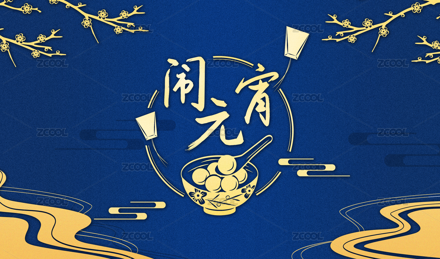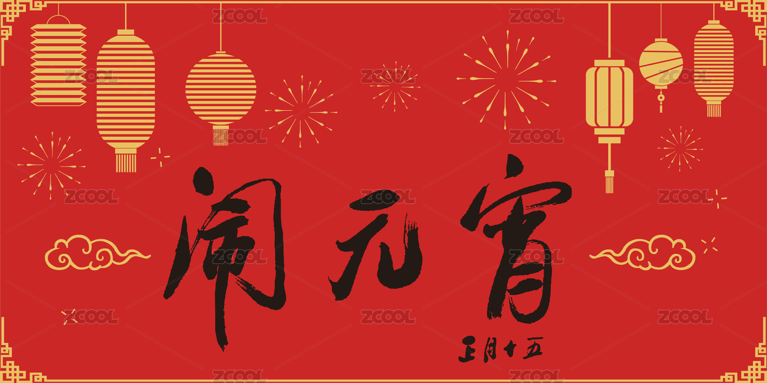 国潮云纹闹元宵灯笼汤圆送福矢量书法字