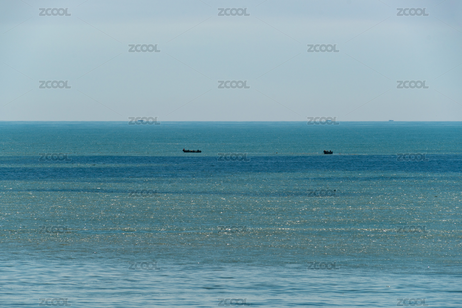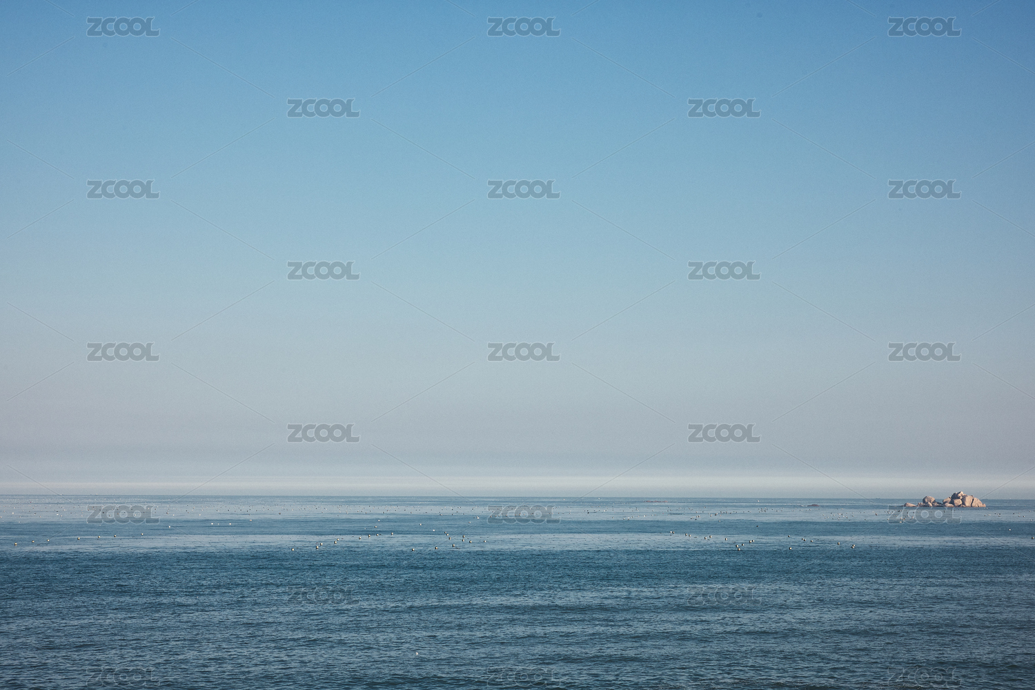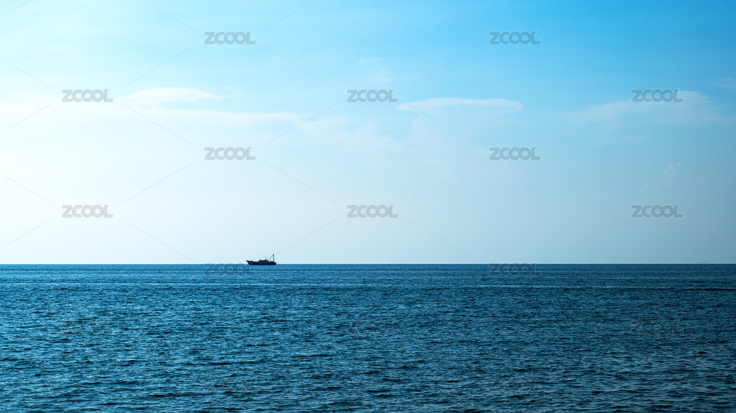 晴空万里的蓝色海洋,天空和海洋相互交接