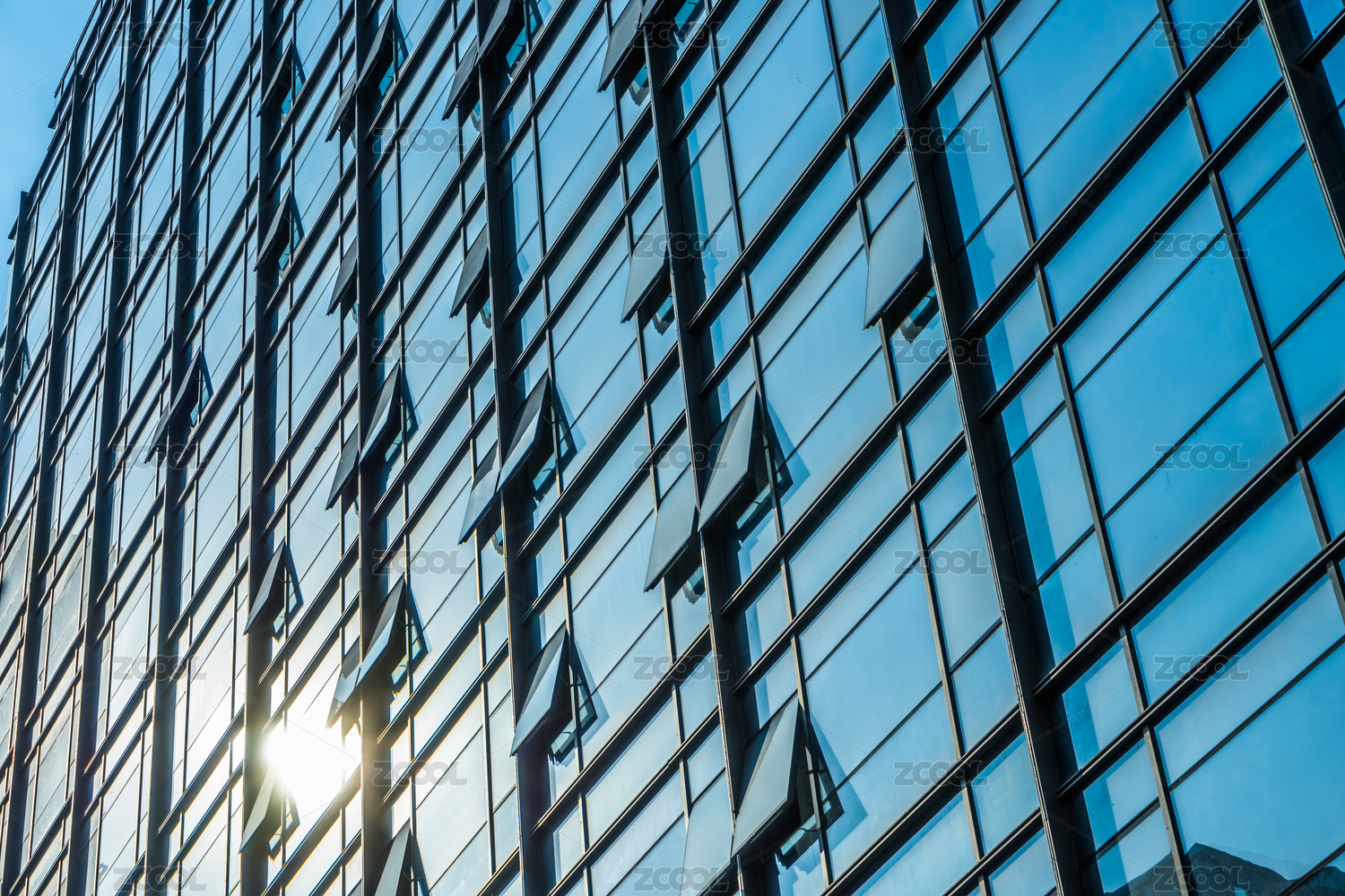 阳光下的现代商业建筑玻璃幕墙