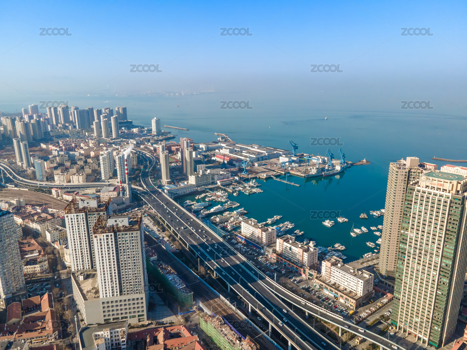 航拍中国山东青岛东部新城金融区建筑景观天际线