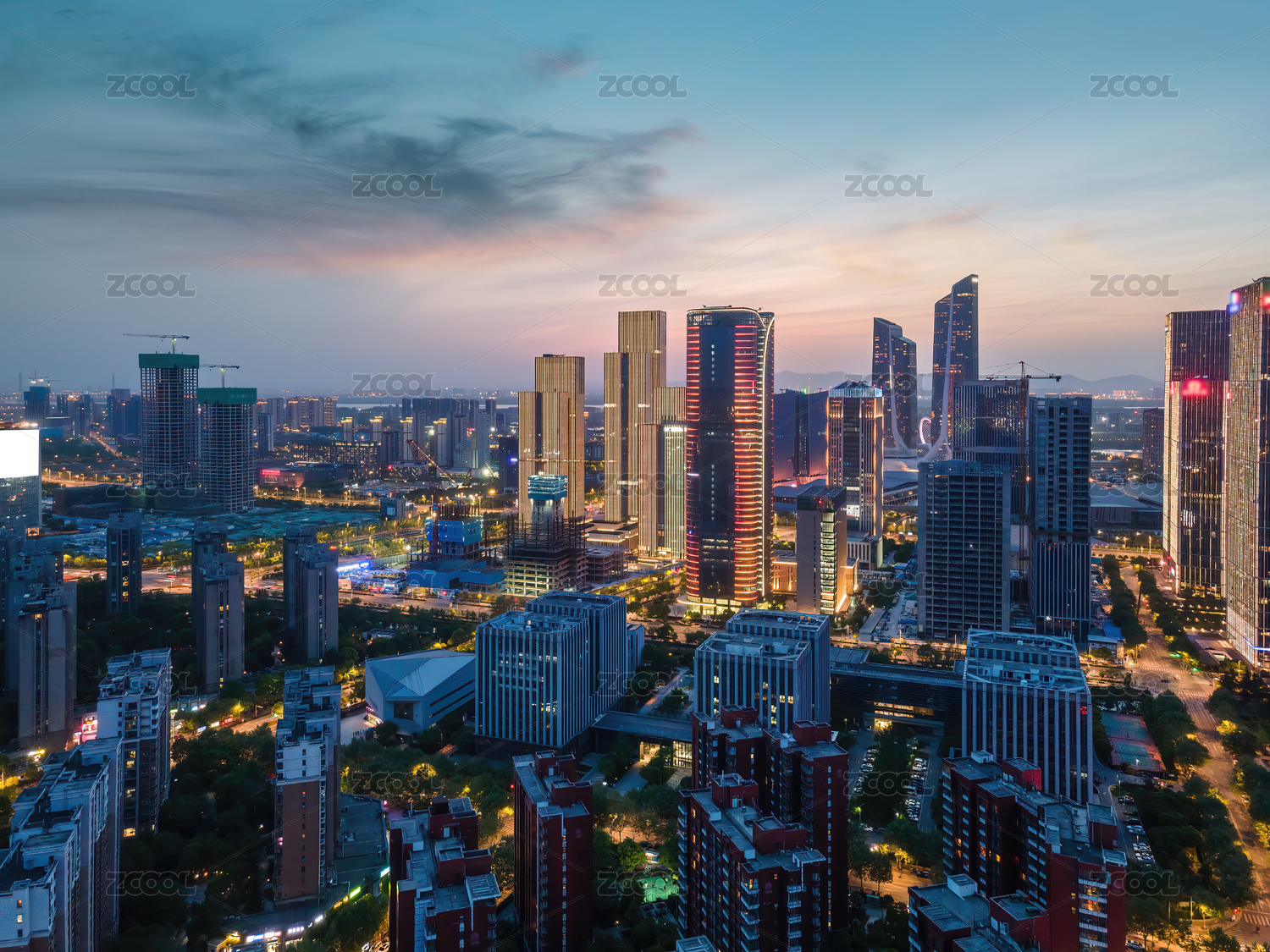 中国江苏省苏州工业园区夜晚航拍风景,商业