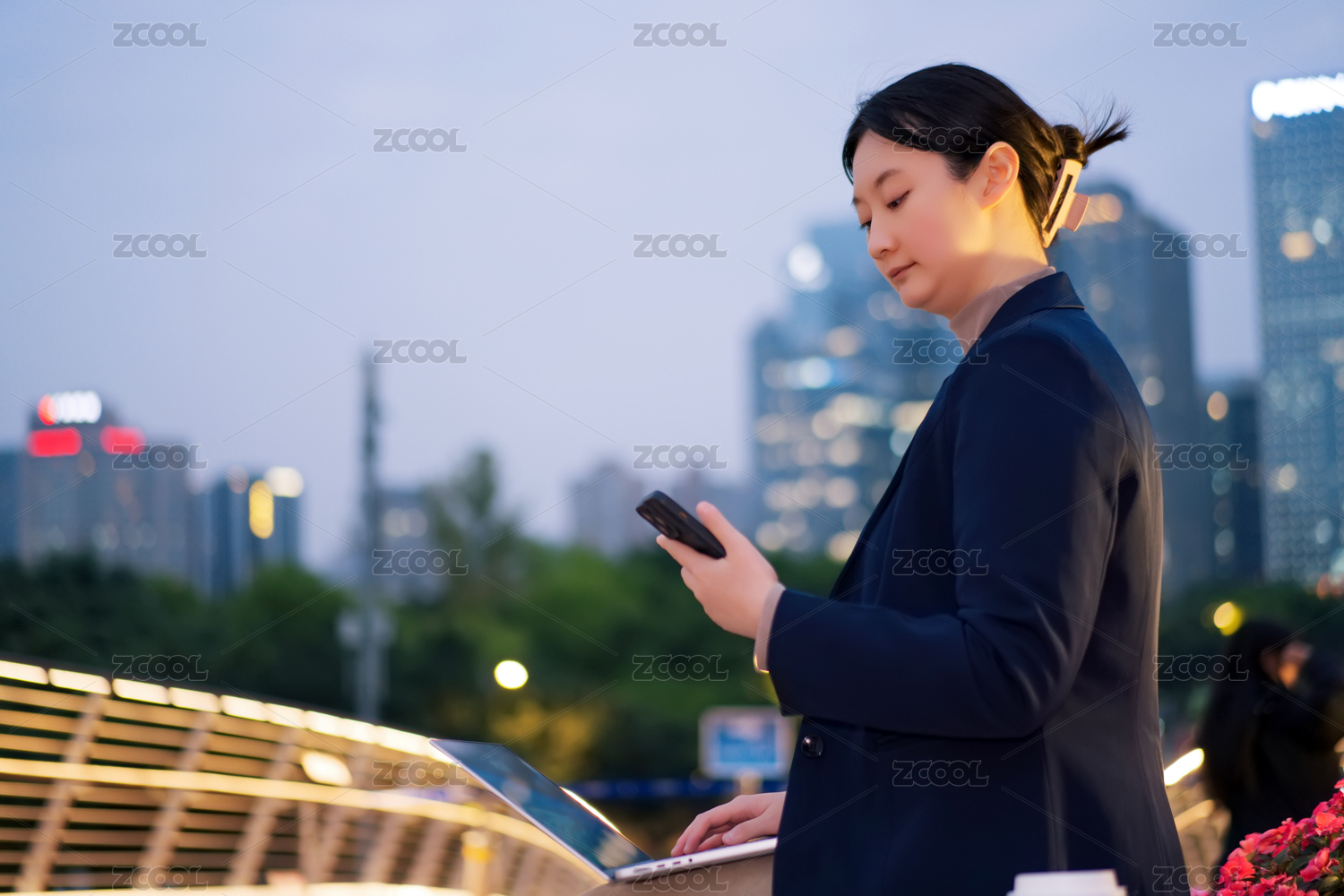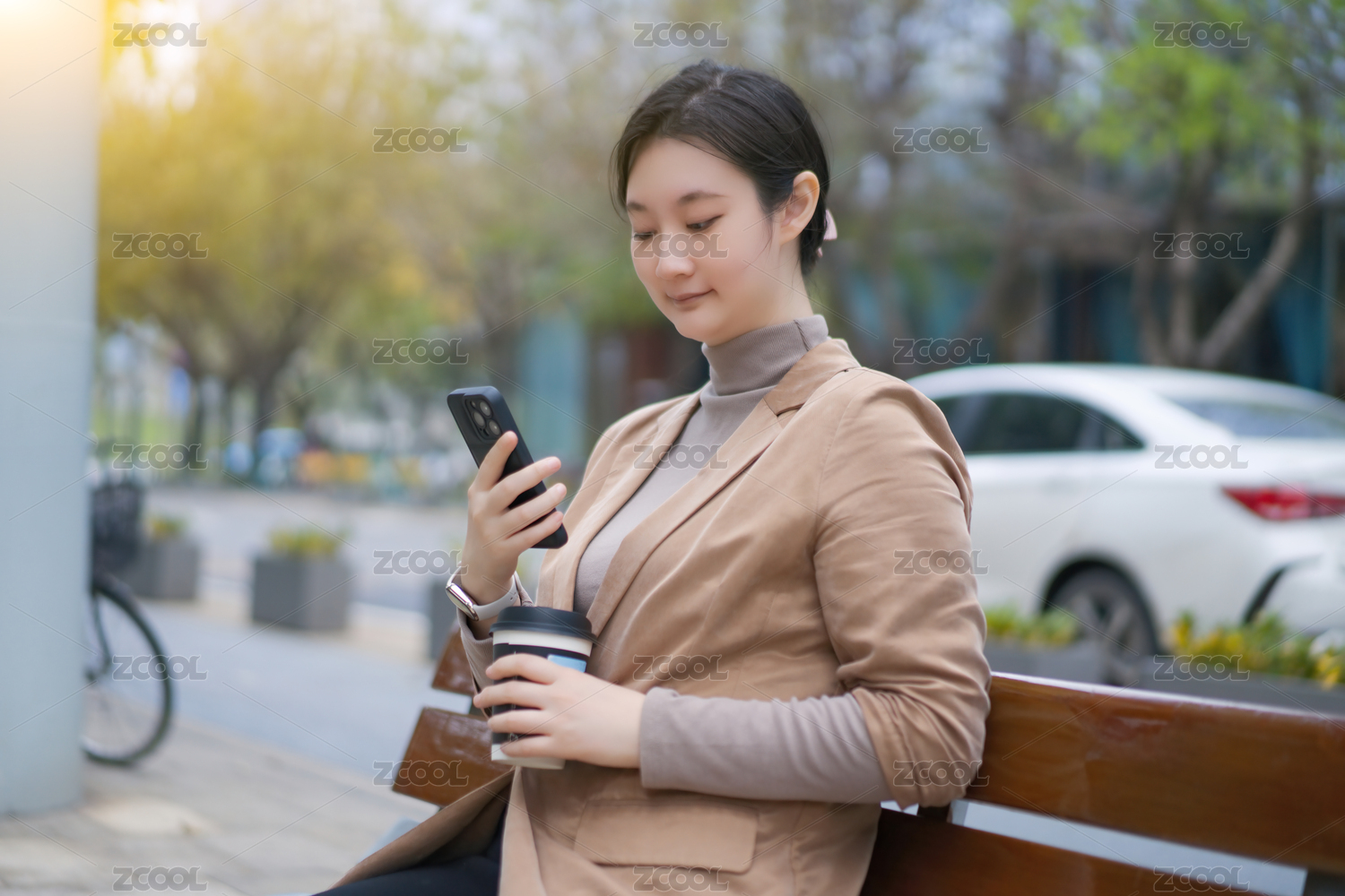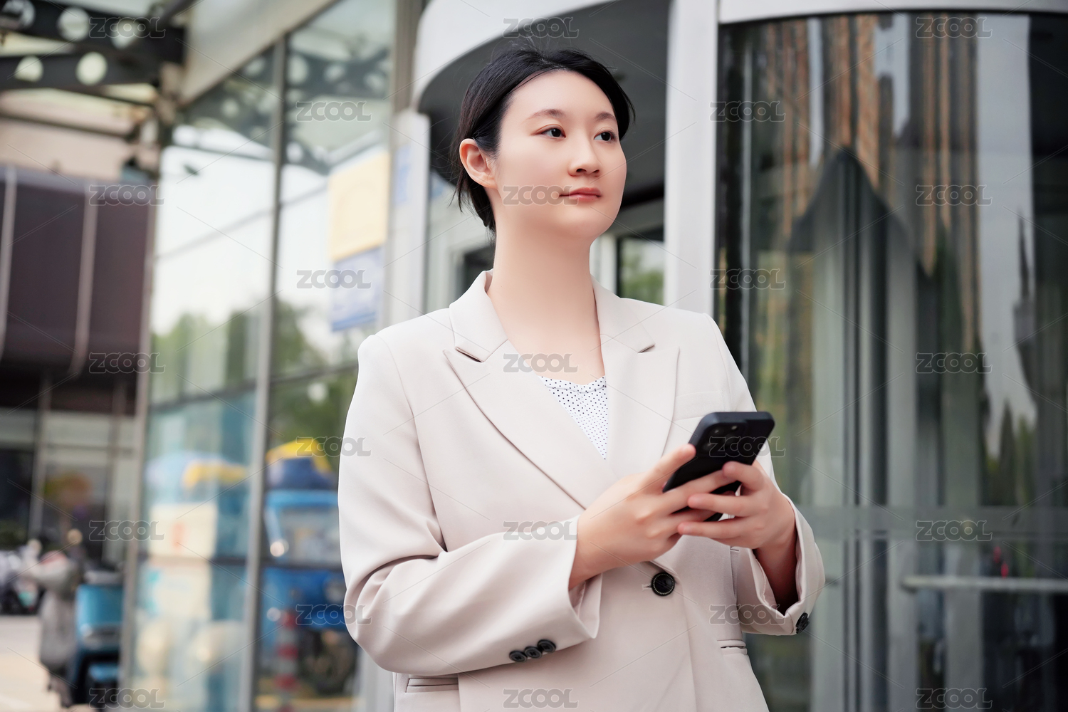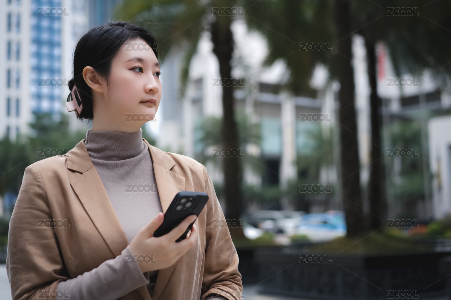 女商人,智能手机,专业人士,户外,咖啡杯,技术,现代商业,女企业家,城市环境,职业女性