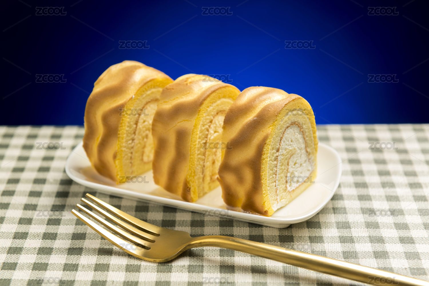 叉子叉虎皮纹蛋糕卷