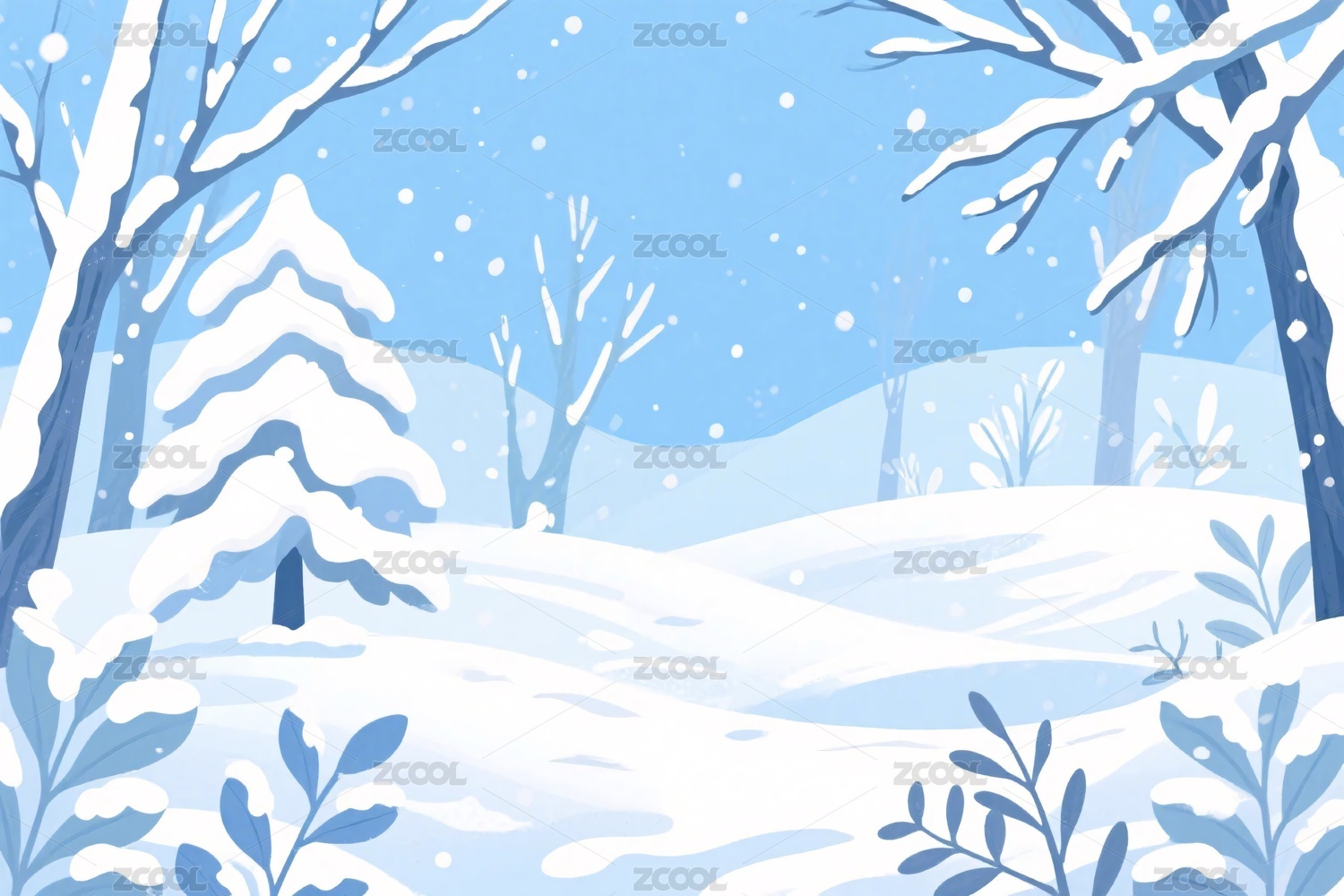 卡通冬季立冬大雪冬天树林森林雪景背景扁平矢量插画