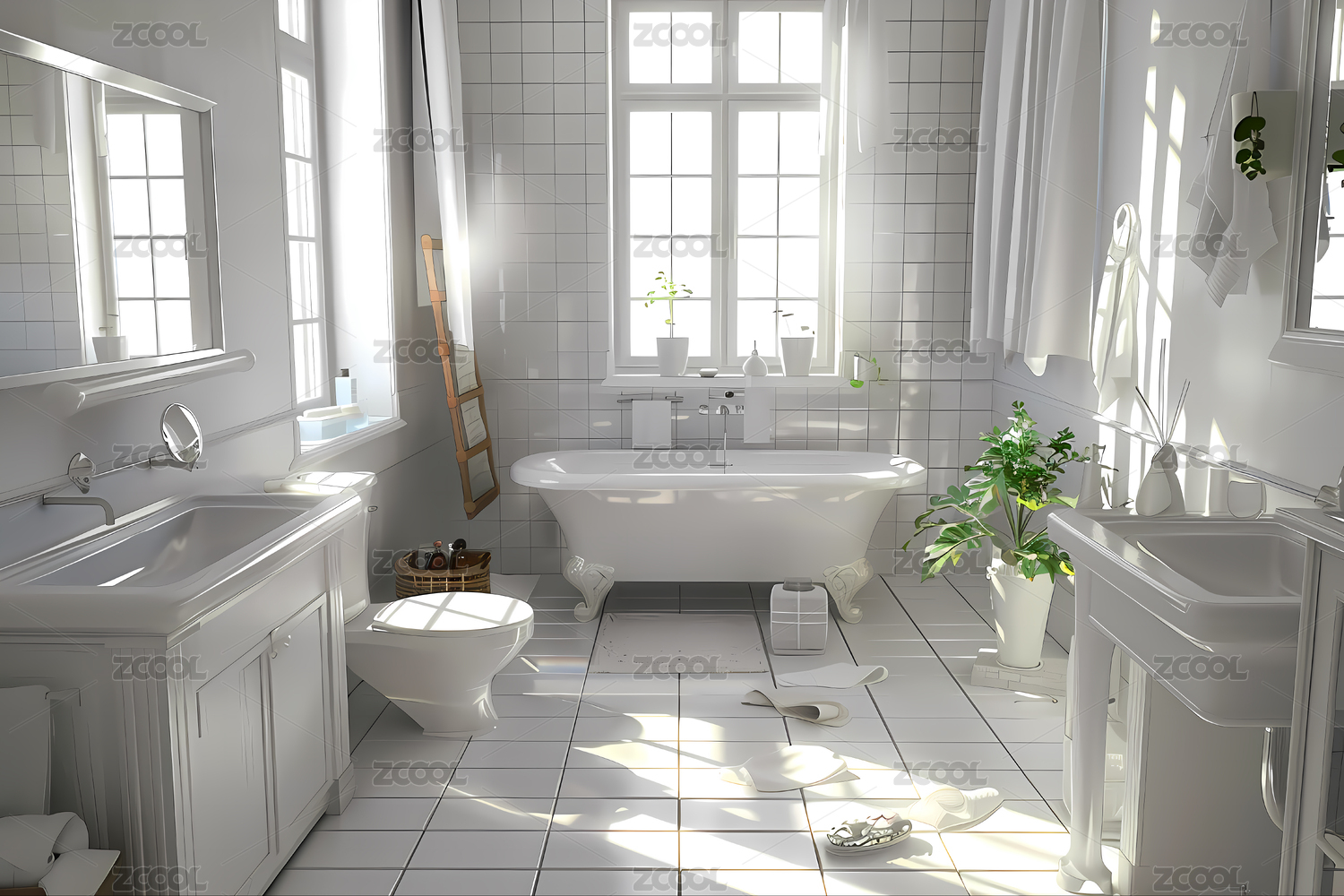 建筑,卫生间,室内,明亮,光线,浴盆,阳光,极简,干净,洗漱间