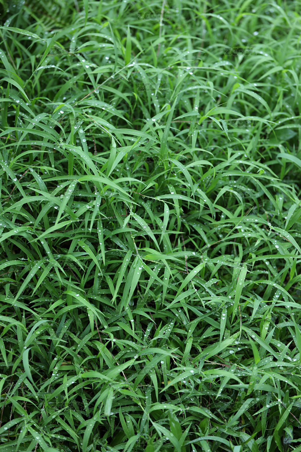 清晨挂着露水水珠的青草叶片