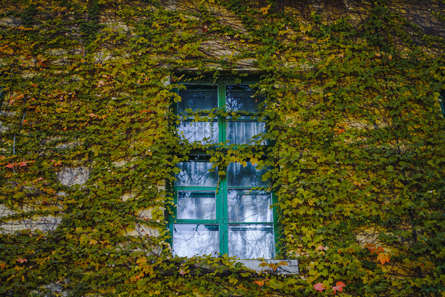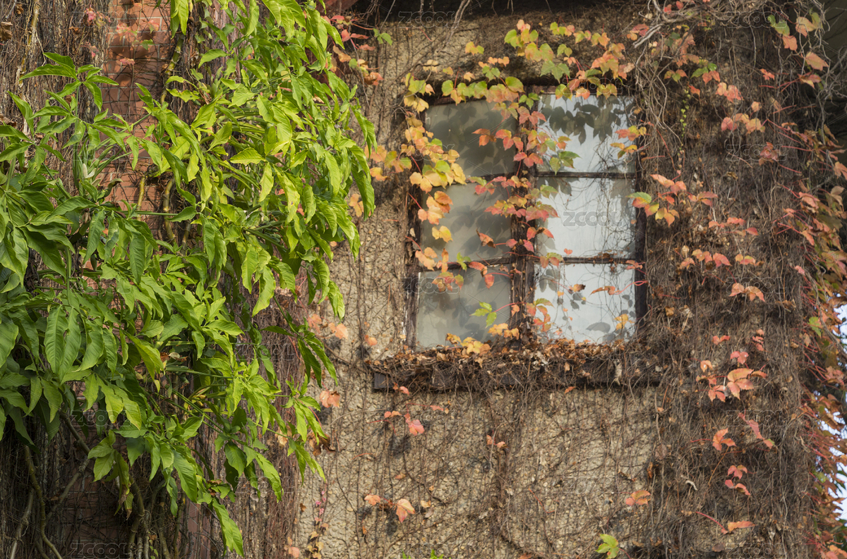 坊茨小镇德式老建筑爬山虎墙面窗台
