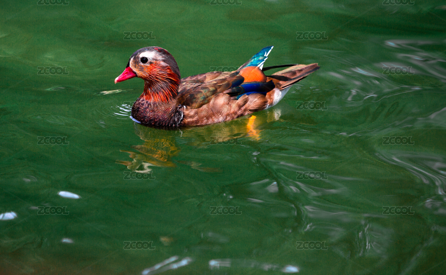广州动物园里在湖面戏水的鸭子