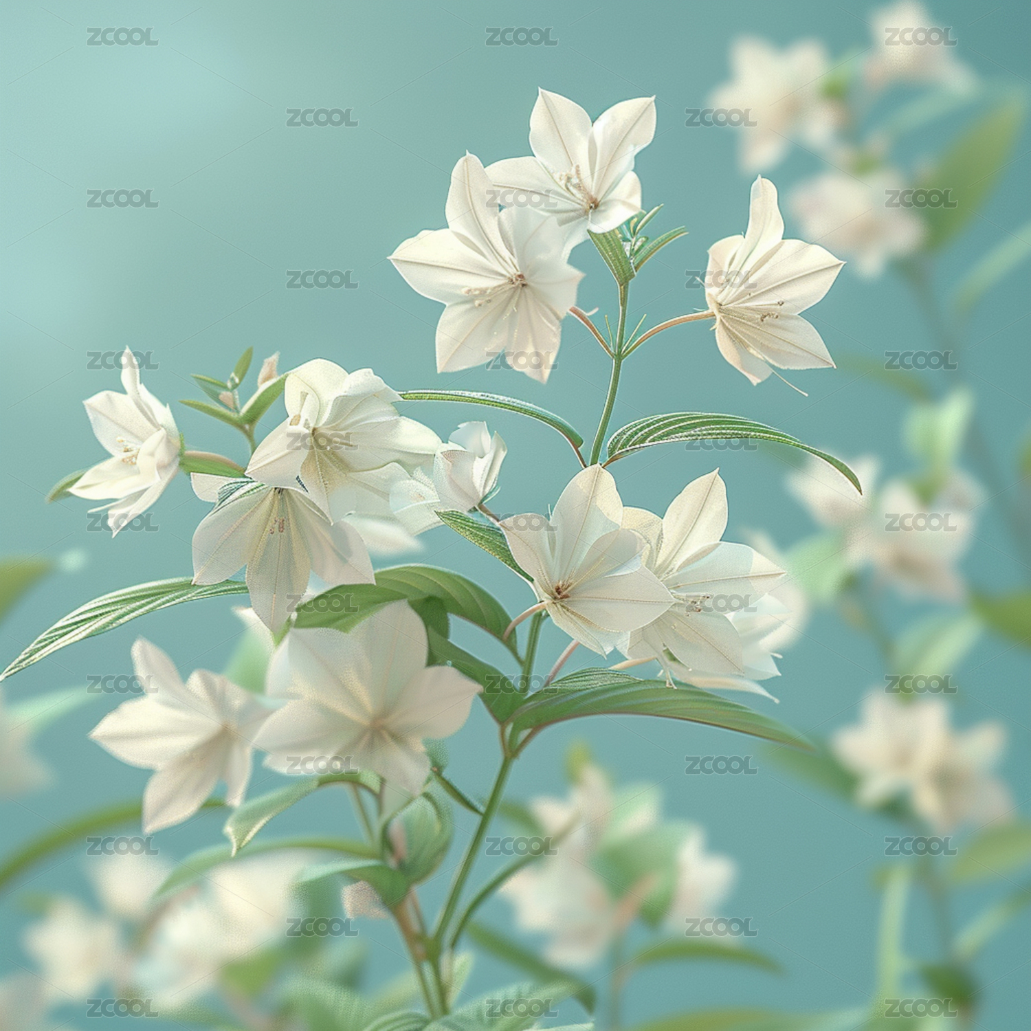 清新茉莉花枝绽放