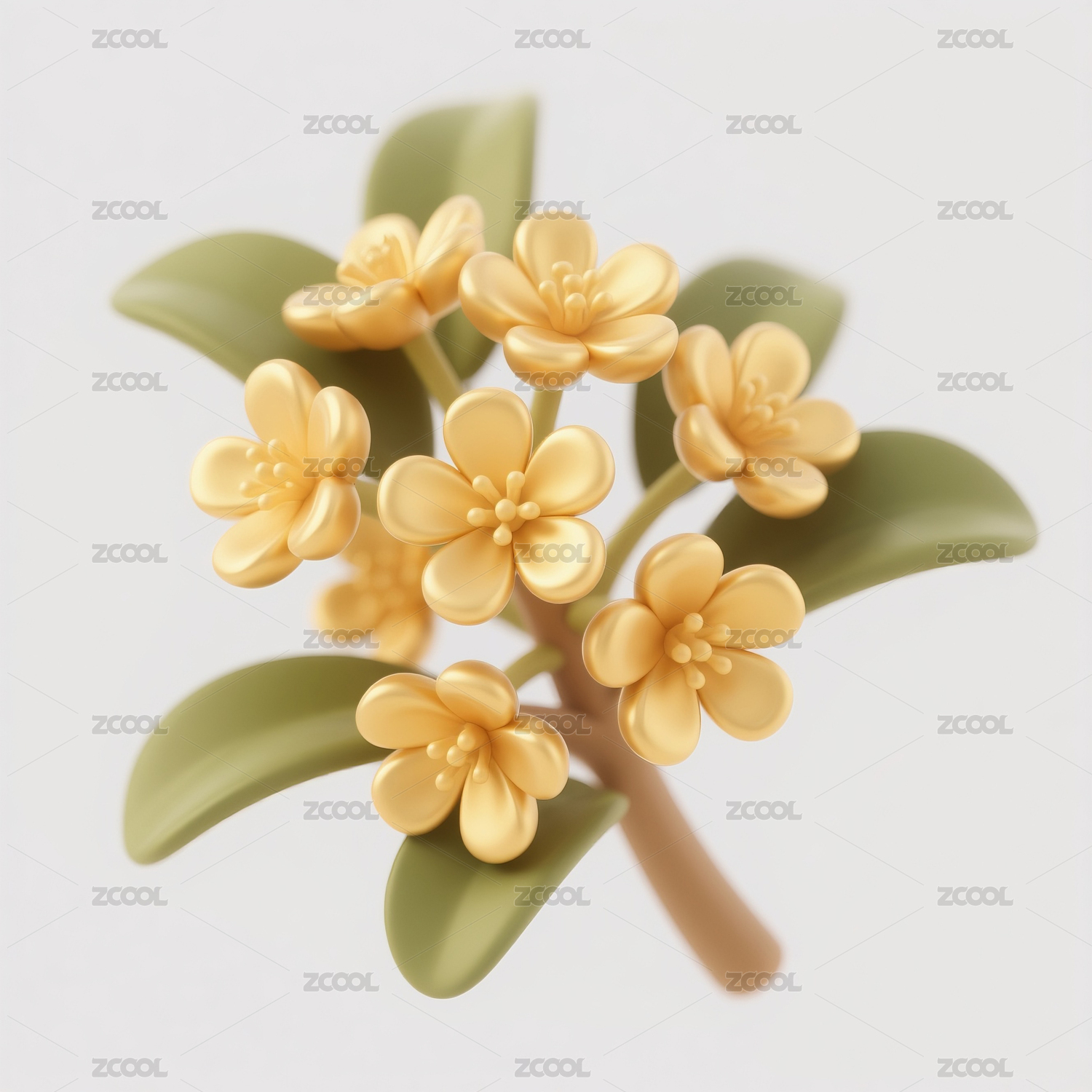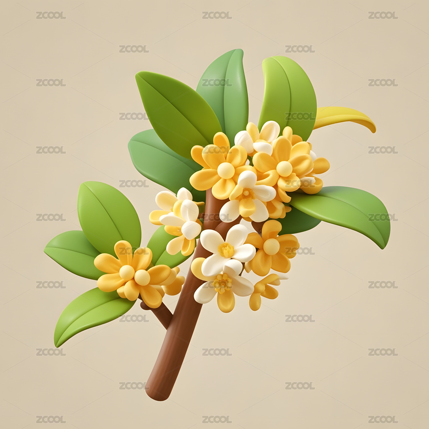 黄花树枝清新风格3D插画
